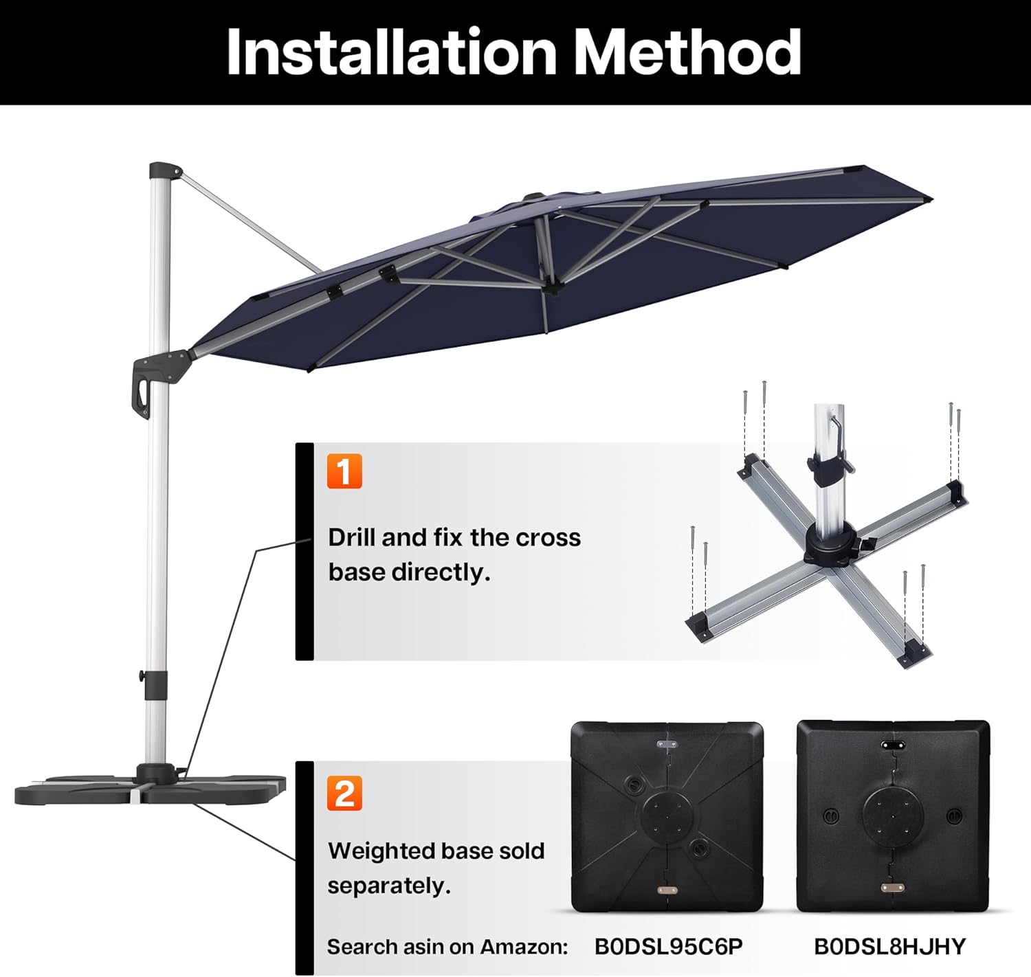 - 360-Degree Rotation & Easy Gliding: A built-in cross base is compatible with 4-piece weighted umbrella stands. Step on the pedal and turn the sturdy aluminum pole to your desired position.