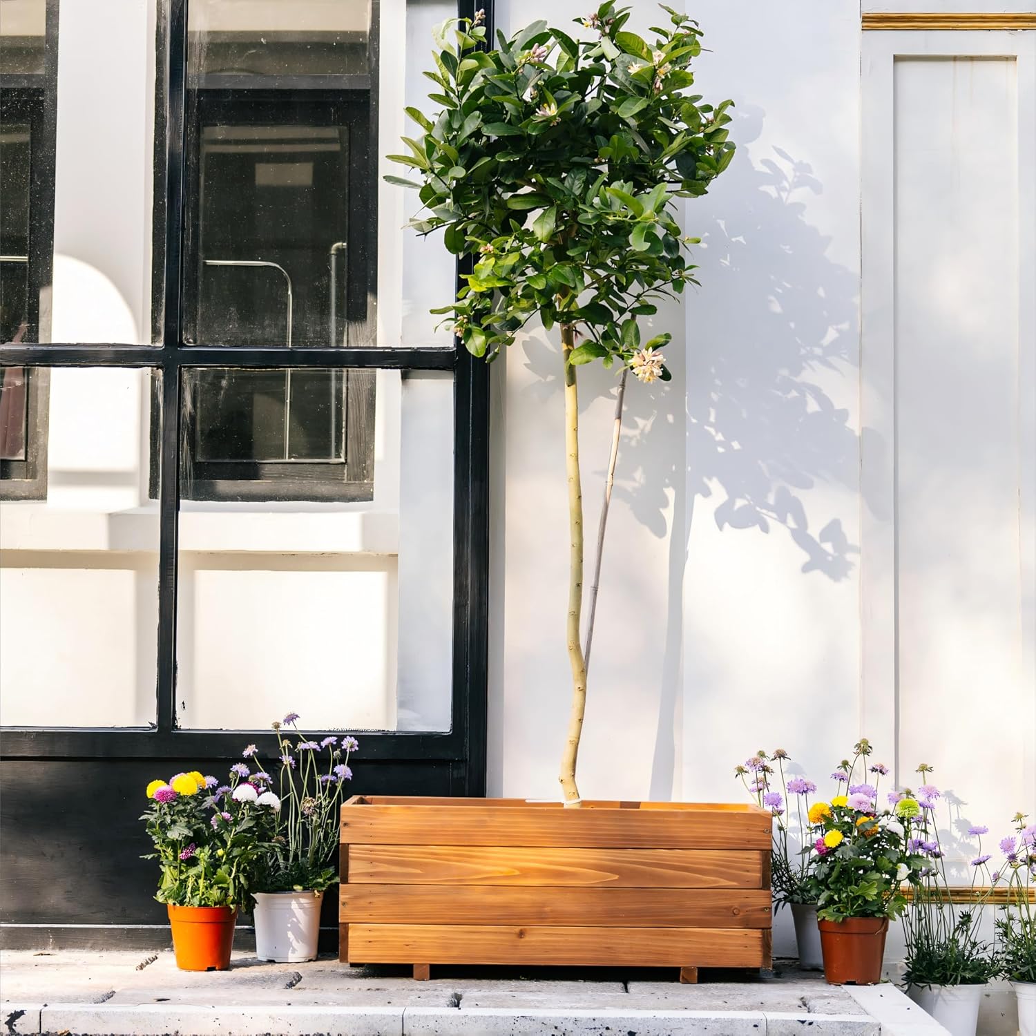 Wooden Raised Garden Bed Planter Box – Fir Wood Outdoor Vegetable, Herb & Flower Box with Drainage Holes – 31.5"x15.75"x12.6", Rot-Resistant, for Patio, Yard, Balcony