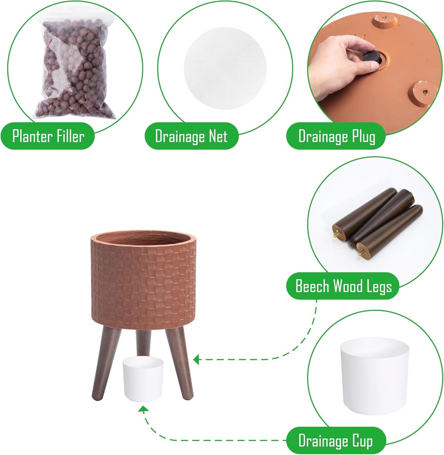 - Special Feature : Drainage Hole, Optional Plug, Mesh Net, Ceramic Filler Balls, Water Catch Cup