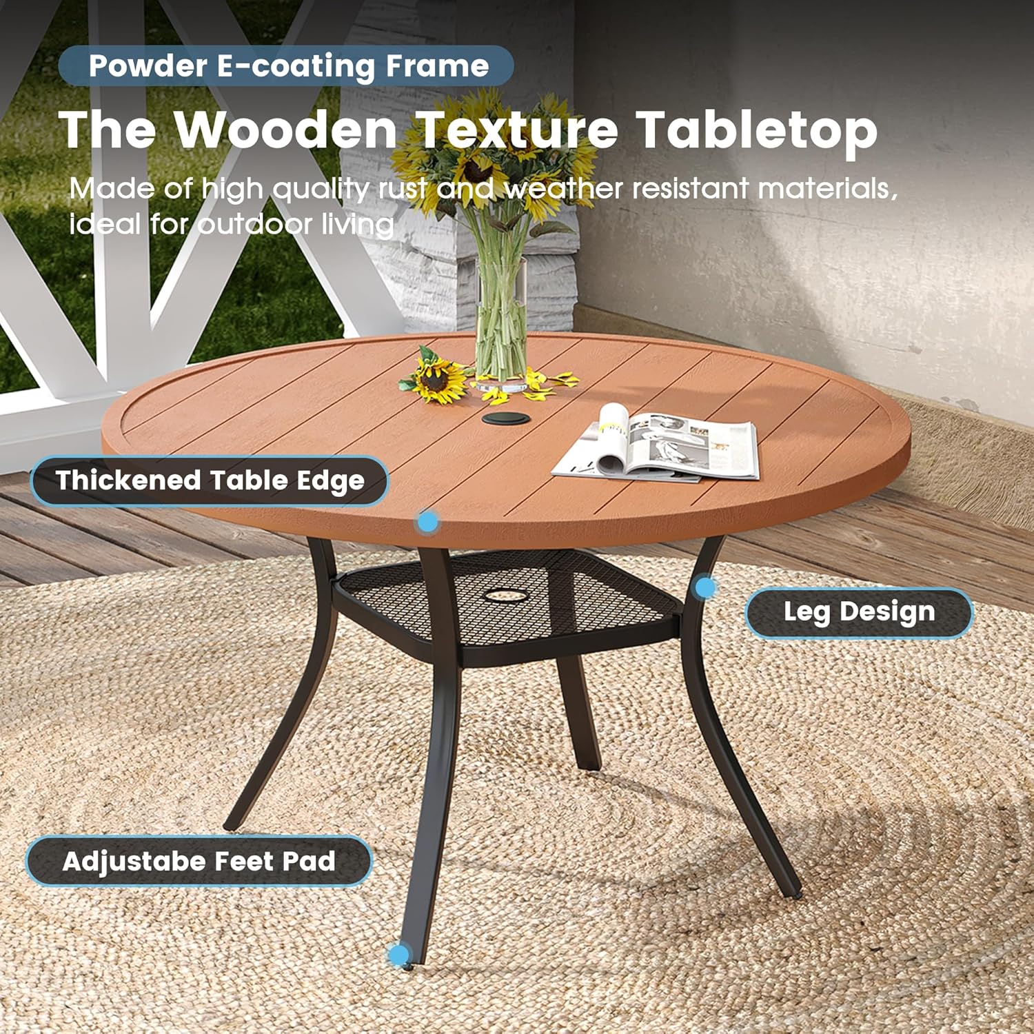 - 【Upgraded Material】High-quality metal steel frame structure with advanced powder e-coating to make the outdoor table more sturdy and provides long-term protection for rust and corrosion resistant, no special maintenance required