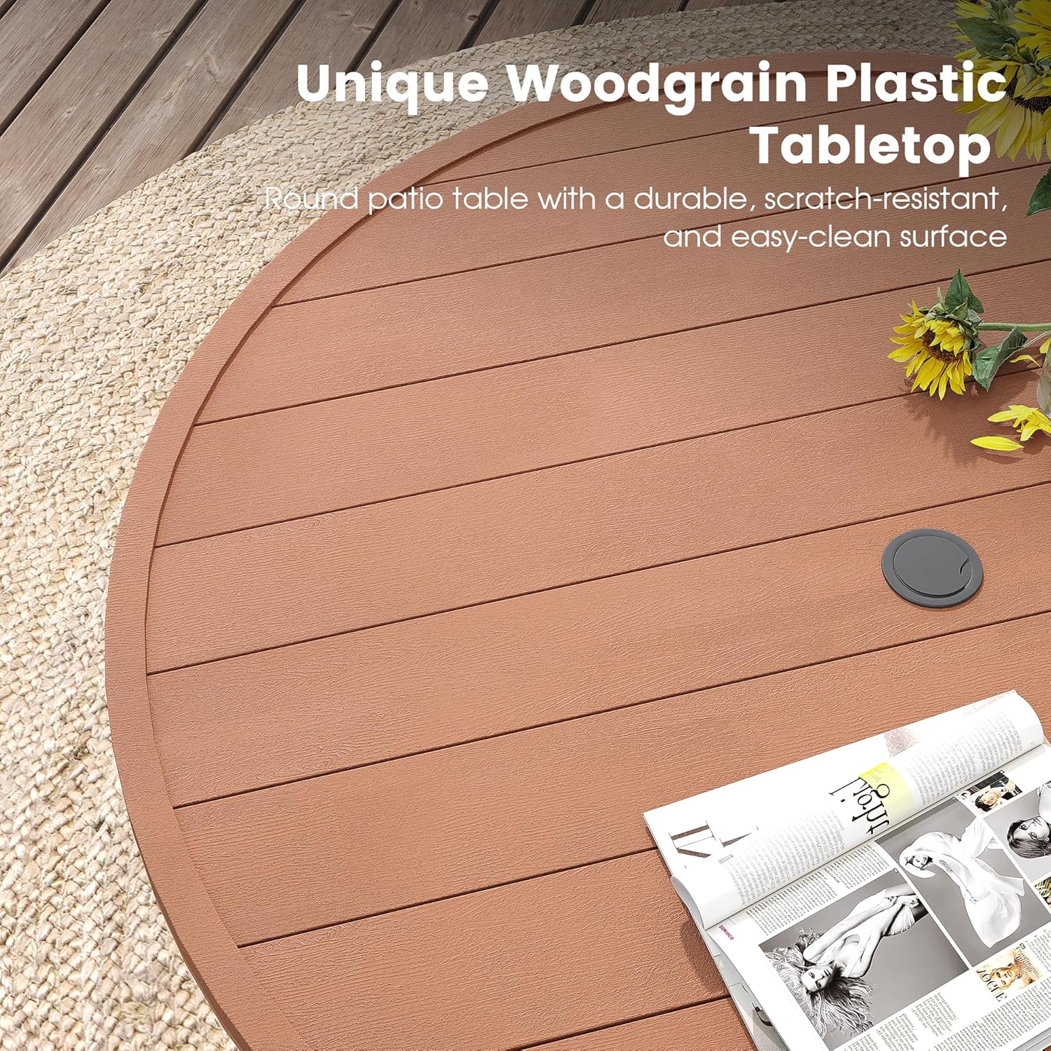 - 【Durable Wood-Like Tabletop】The tabletop is made of wood-like plastic slats, which has the appearance and realistic texture of a wooden tabletop, while being easy to wipe clean and far more resistant to water, has a long service life