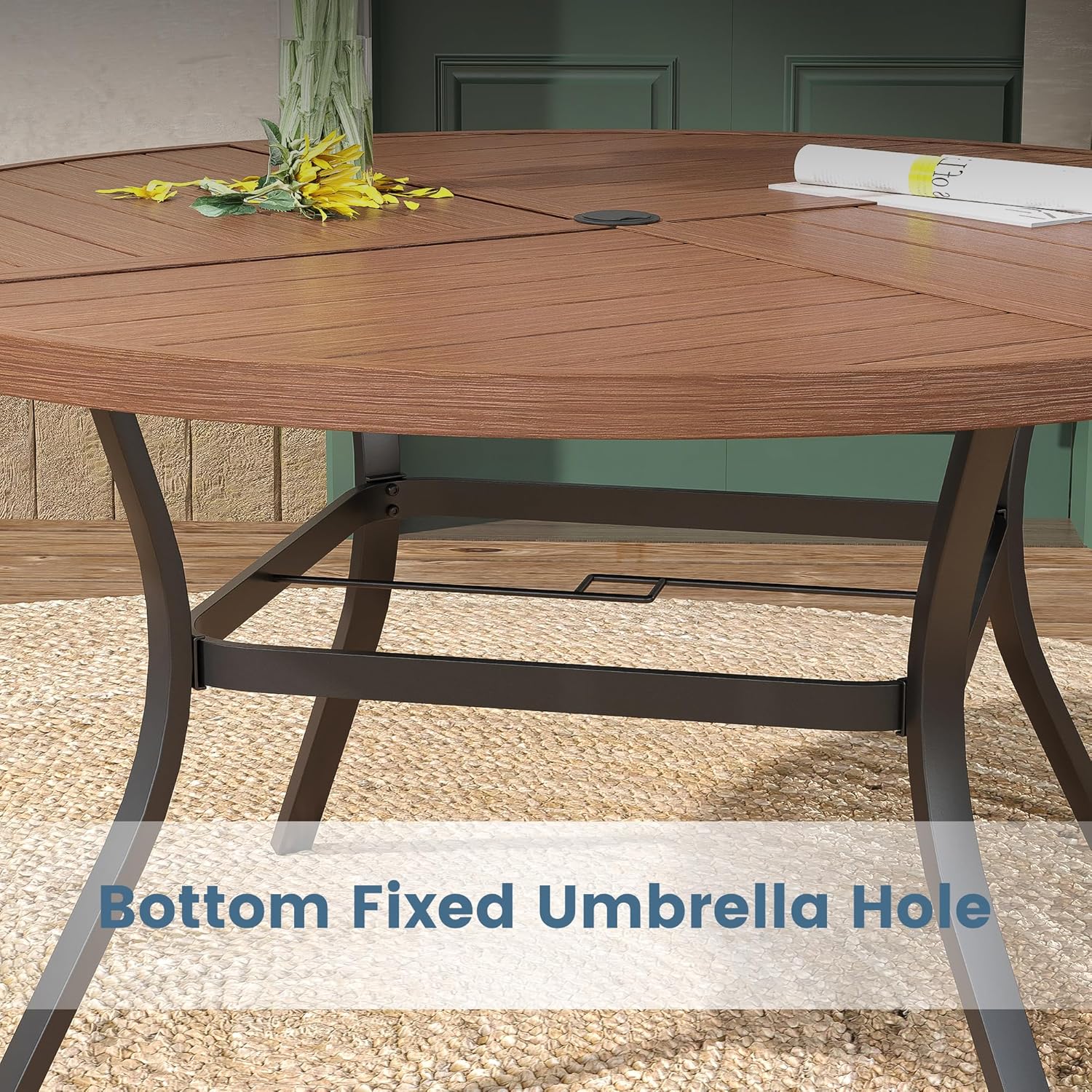 - 【Thoughtful Details】The slatted tabletop design leaves gaps for easy cleaning and prevents water accumulation. The unique crossover folio round table design on the tabletop adds a touch of elegance and can be matched with different patio sets