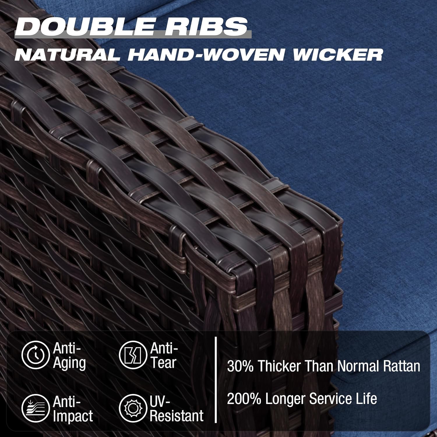 - Ergonomic Design: Our outdoor wicker chairs are upgraded to a larger size to bring you more extraordinary comfort. The ergonomic curved backrest and wider armrests provide better support for your neck and arms