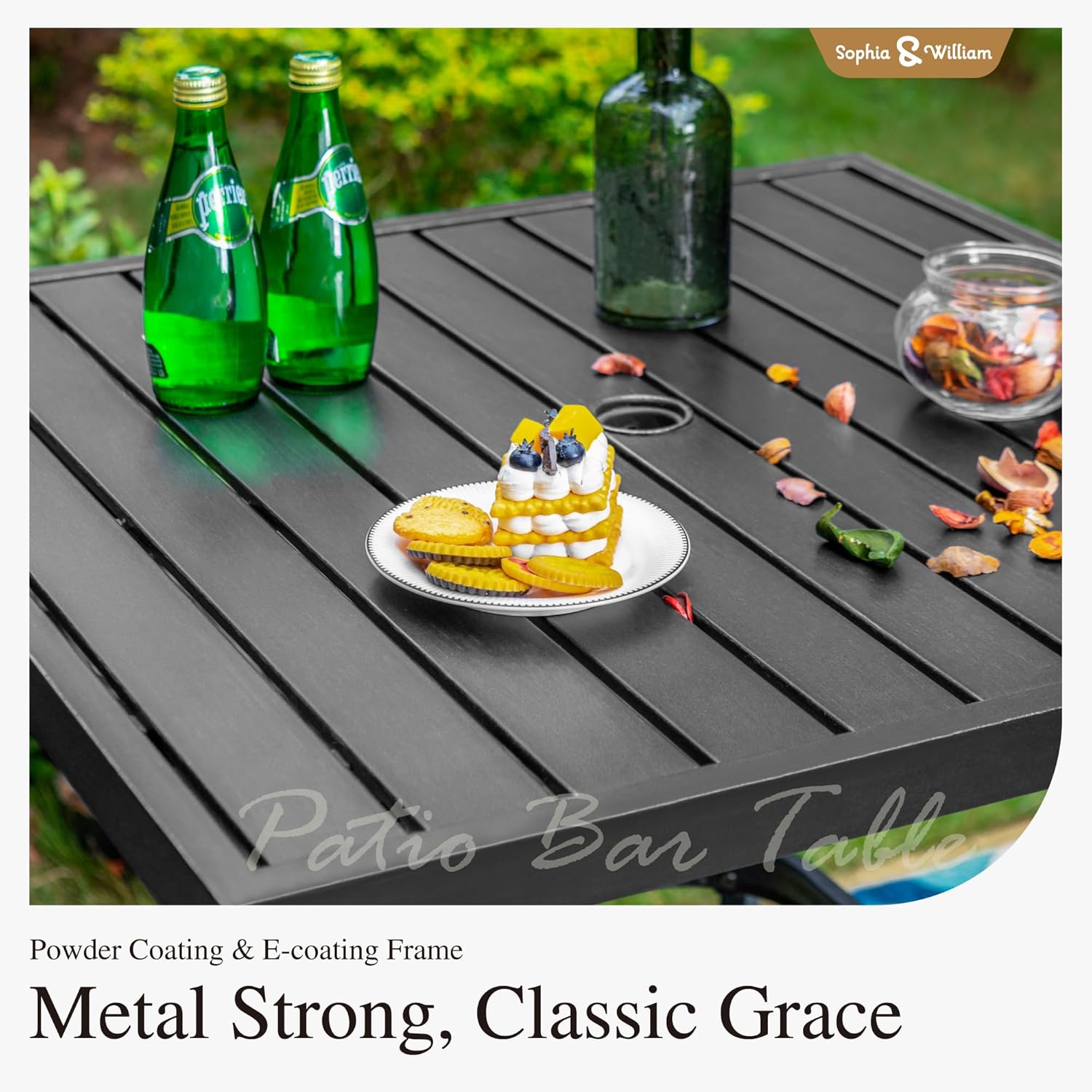 - Built to Last: Crafted for lasting enjoyment, this patio set boasts a sturdy construction and weatherresistant ecoating technology that stand up to the elements. Easy to clean and maintain