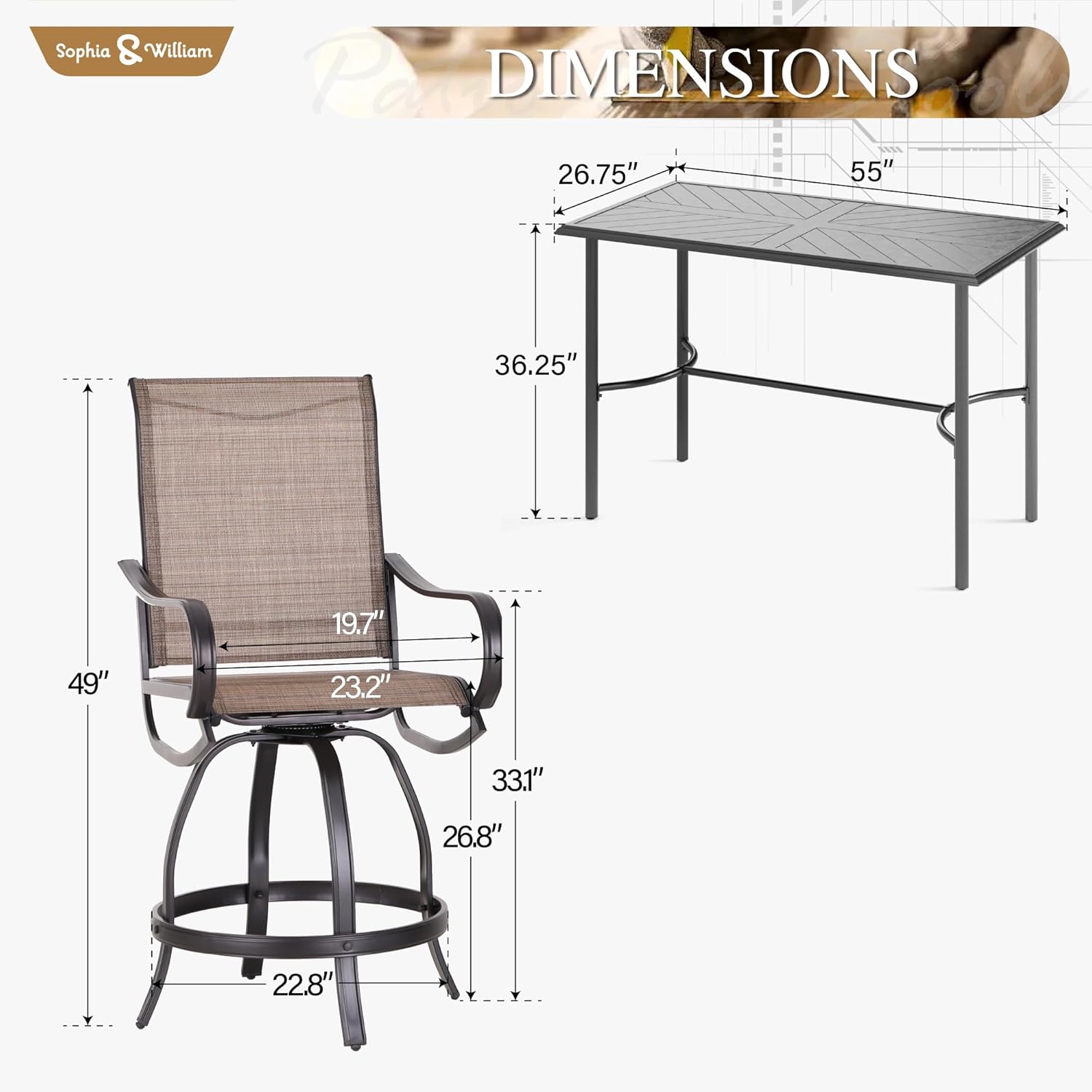 - counter height Patio Table and Chairs: Combines ergonomic high back design with seamless swivel functionality, this bar set provides a stylish and elevated seating option that adds flair to any space. Patio bar table features a classic and neat tabletop with 1.57 umbrella hole