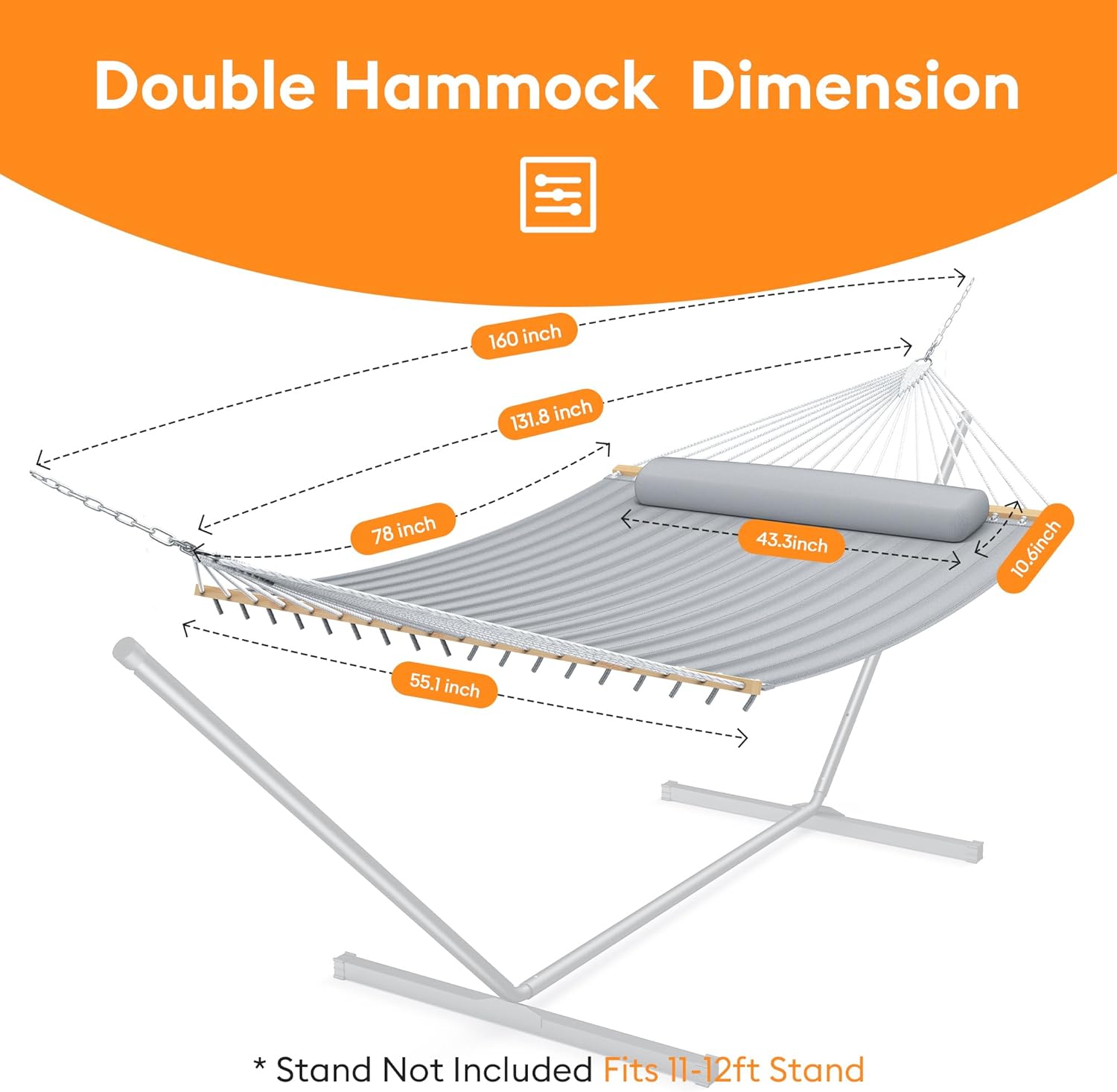 - Simple Setup and Quick Installation: Thea hammocks are easy to set up. With 14 inch chains at each end, it can be easily attached to a hammock stand or securely hung between two trees. No complicated tools or skills are required. Whether you're a seasoned outdoorsman or a beginner, you'll be able to enjoy your hammock in minutes, bringing the comfort of home to any outdoor location.