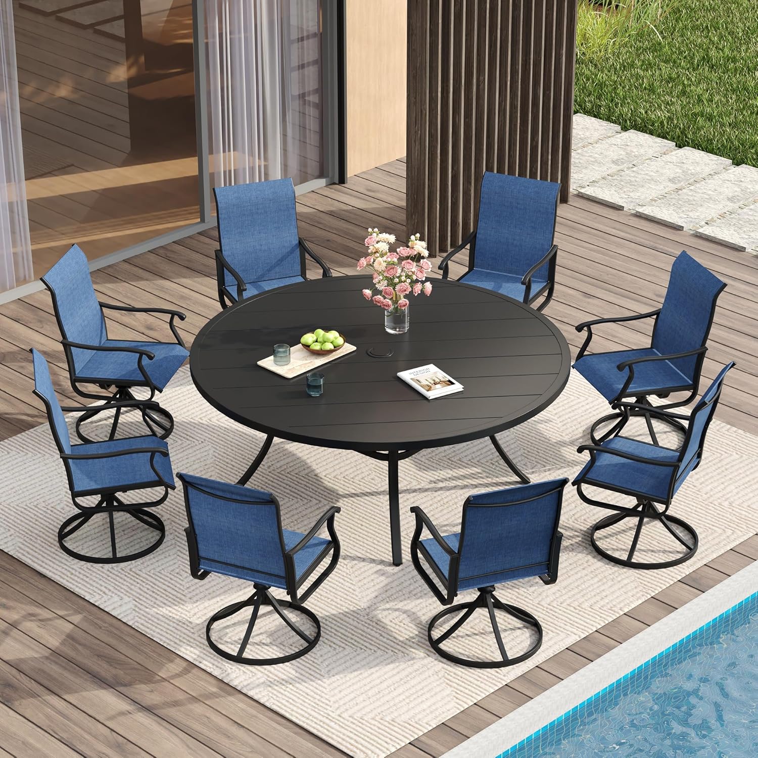VICLLAX 60" Outdoor Round Patio Table for Lawn Garden, All Weather Metal Round Patio Dining Table with Adjustable Umbrella Hole, Outdoor Table for 8-10 Person, Black Tabletop