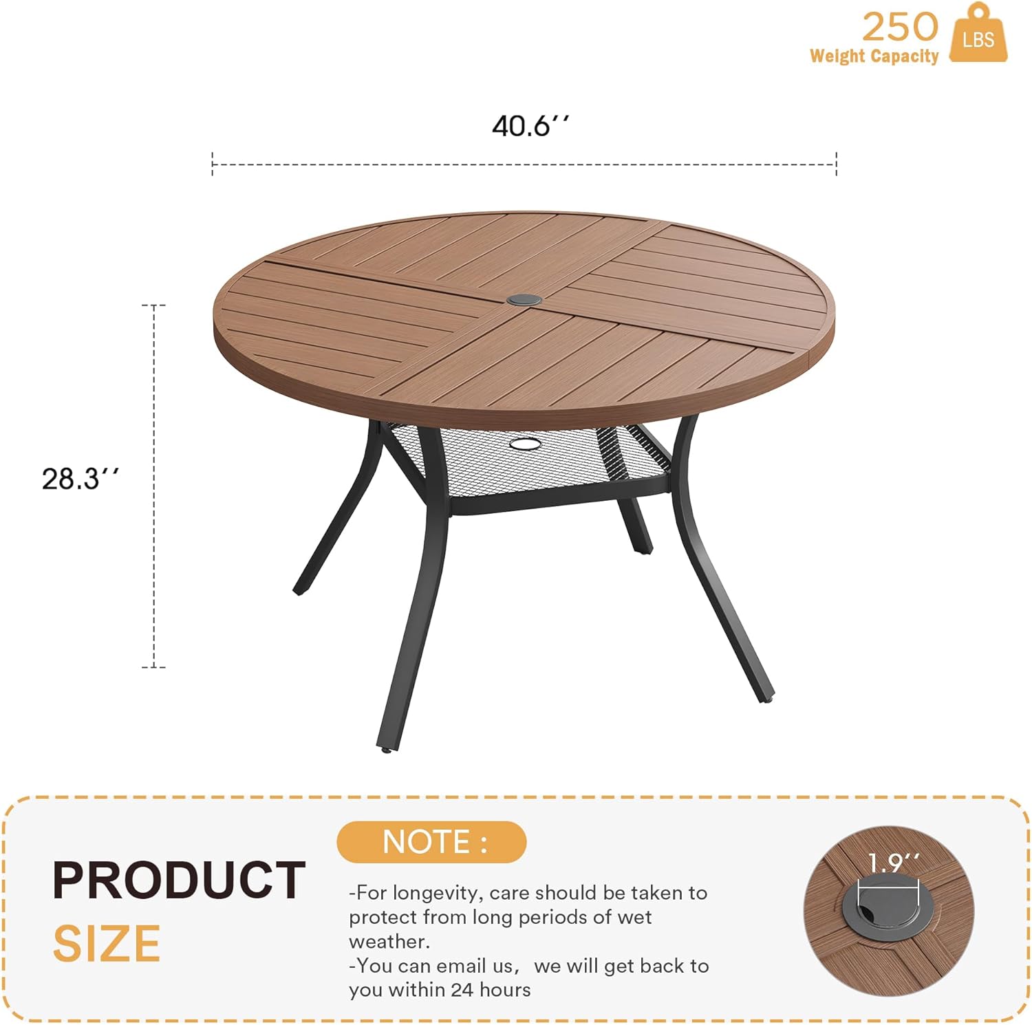 - 【Accommodates 4 People】40.6"x 40.6"x 28", 1.57"-1.9" adjustable umbrella hole, large enough for gatherings with family or friends, ideal for gardens, poolsides, decks and any outdoor space