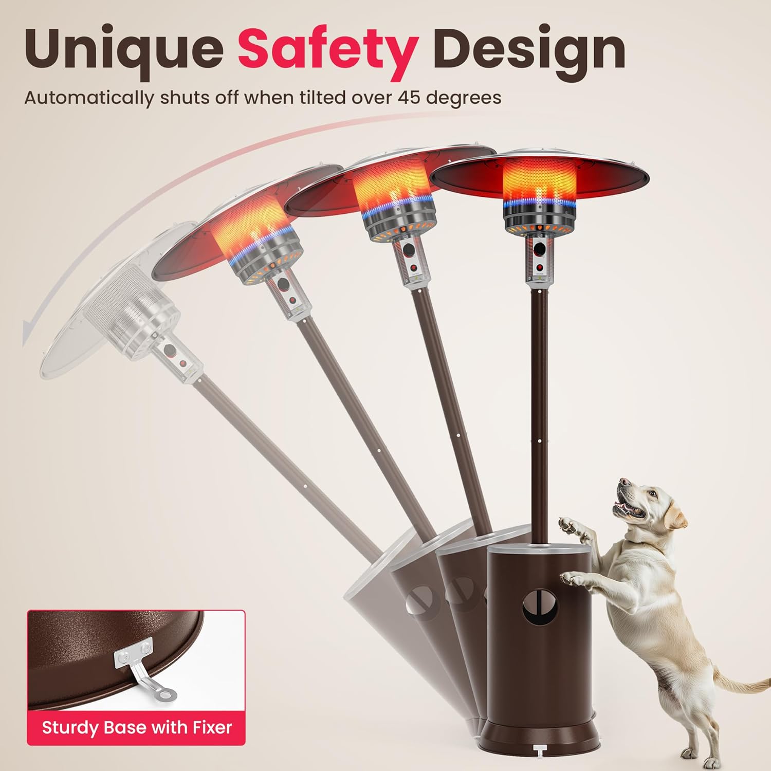 - Flat Top Heater,crafted from stainless steel,offers variable heat settings.Its built in control valve enables you to effortlessly adjust and regulate the temperature according to your preference. Equipped with a tip - over protection system, a safety valve will automatically shut off the heater in case it gets tilted.