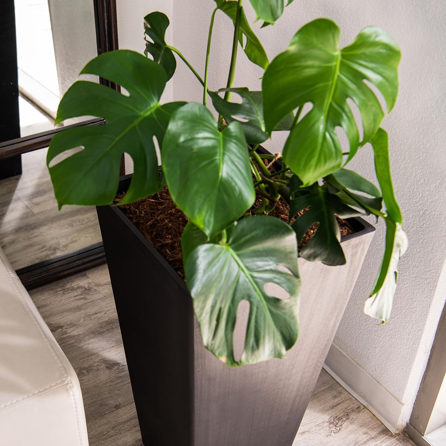 - LARGE AND VERSATILE: The large size of these tapered square planters (measuring 15.2 in. x 15.2 in. wide and 30 in. tall and weight of 20.4 pounds, each), makes this set of two same sized planters ideal for accommodating bigger plants and adding a bold and impressive presence to your indoor or outdoor space.