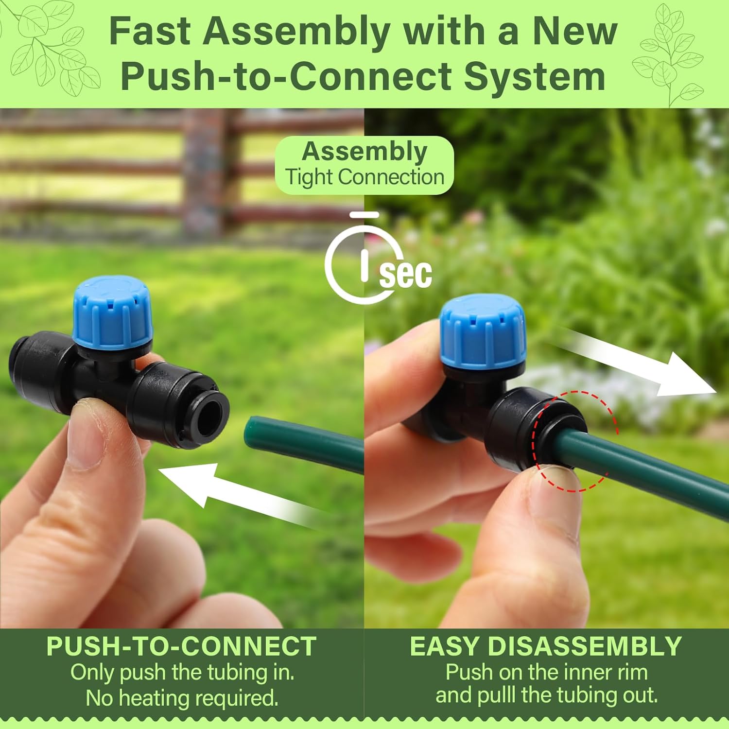 - π± DIY-friendly irrigation system for garden β Quick-connect design and flexible tubing make setup easy in just 5 minutes. The drippers are twist-open for cleaning, preventing clogs and extending the life of your drip system.