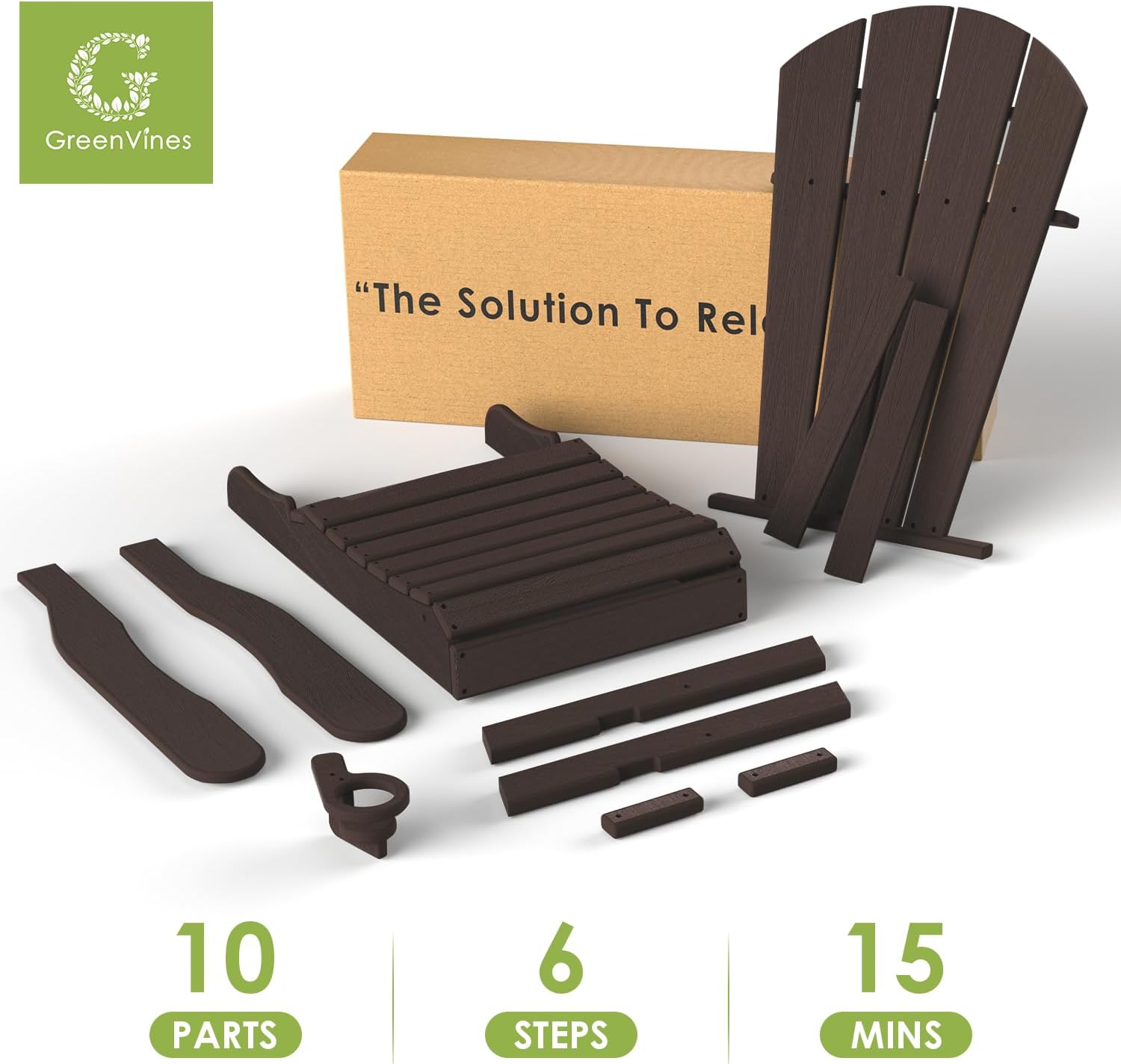 - 【True HDPE】 Upgrade your outdoor experience with GreenVines HDPE (High Density Polyethylene) Adirondack chairs. Our composite material offers superior quality and safety compared to typical PE or PS chairs. Unlike traditional wood chairs, our HDPE chairs are waterproof, weather-resistant, fade-resistant, and resistant to chipping, peeling, cracking, and rotting. Choose GreenVines HDPE Adirondack chairs for a reliable and low-maintenance outdoor seating solution