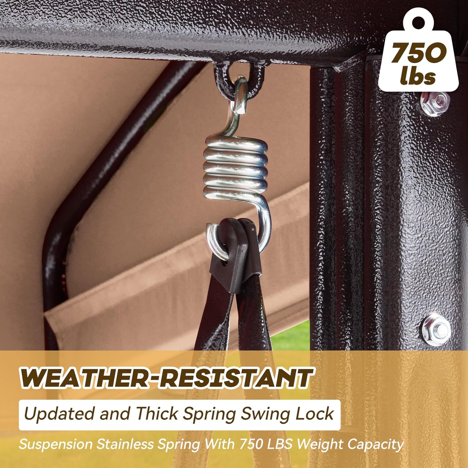 - 【Sturdy and Safe Construction】: The maximum weight capacity of porch swing is 750 pounds, our glider swing is designed for 3 adults to sit comfortably. The swing outdoor has a reliable buckle on backrest, ensuring stability and preventing any unwanted swinging. The double protection of 3 seat garden swing is designed for preventing accidental tipping.