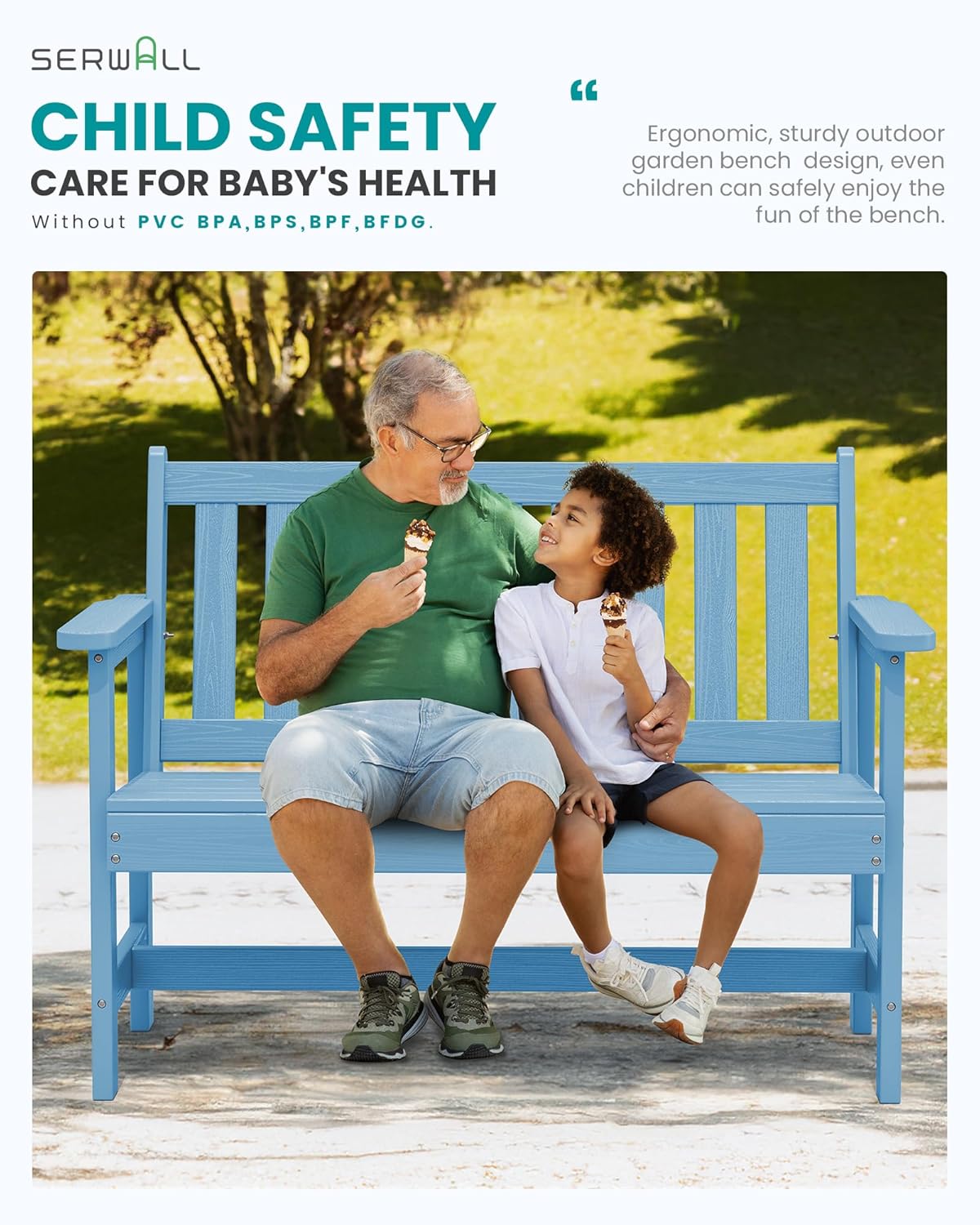 - All-Weather Resistant: The SERWALL garden bench is made of durable high-density polyethylene (HDPE), along with 304 stainless steel hardware, making it resistant to various weather conditions and ensuring long-lasting durability. It is an ideal choice for any outdoor environment.