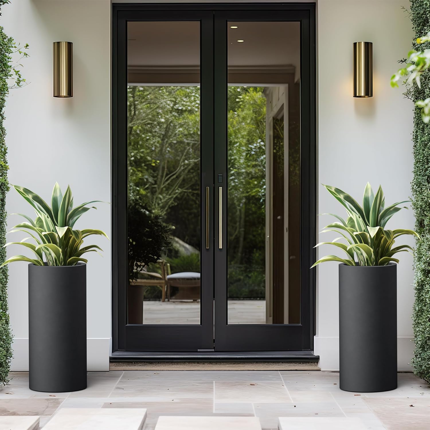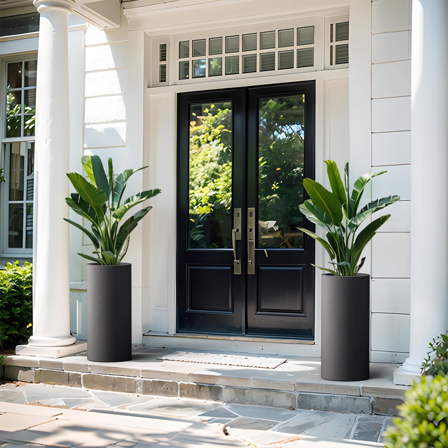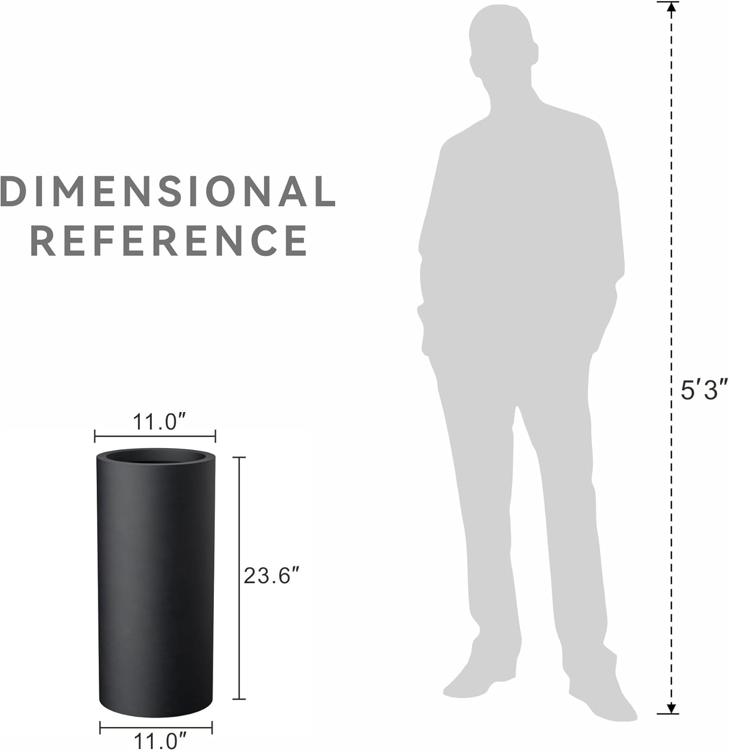 Kante 23.6 Inch Tall Cylindrical Planter, Large Round Plant Pots with Drainage Hole, Made with Concrete, Suitable for Indoor Outdoor Plants, Home Decor, Black