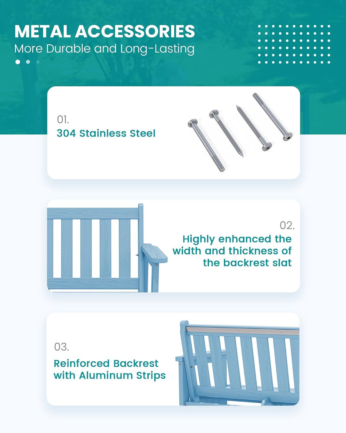 SERWALL Outdoor Bench, HDPE Outdoor Benches Weatherproof, 2-Person Garden Bench with 660 lbs Weight Capacity, Patio Benches for Outdoors, Garden, Porch, Backyard and Park, Light Blue
