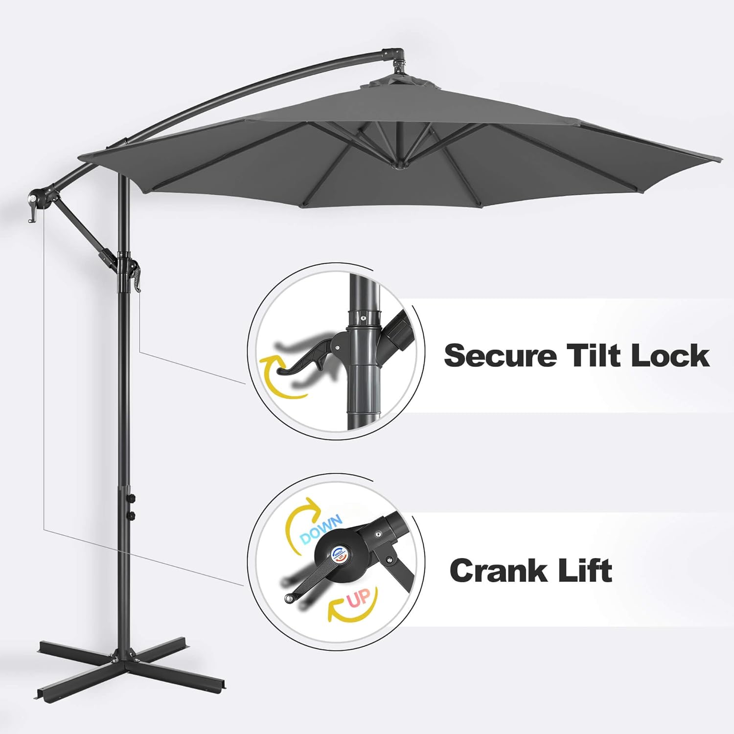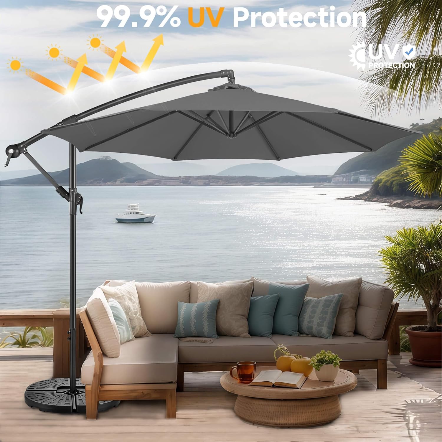 - Note: This cantilever patio umbrellas come with a lightweight cross base (stand only) and requires a minimum 100lbs (45kg) weighted base or sandbags for safe, stable use (compatible bases: B0795SD1JS, B0CKSG7M4W). Protect your investment from rain, snow, and wear with our durable weatherproof cover (B0DRYPXVDW) to double its lifespan—because luxury shade should last