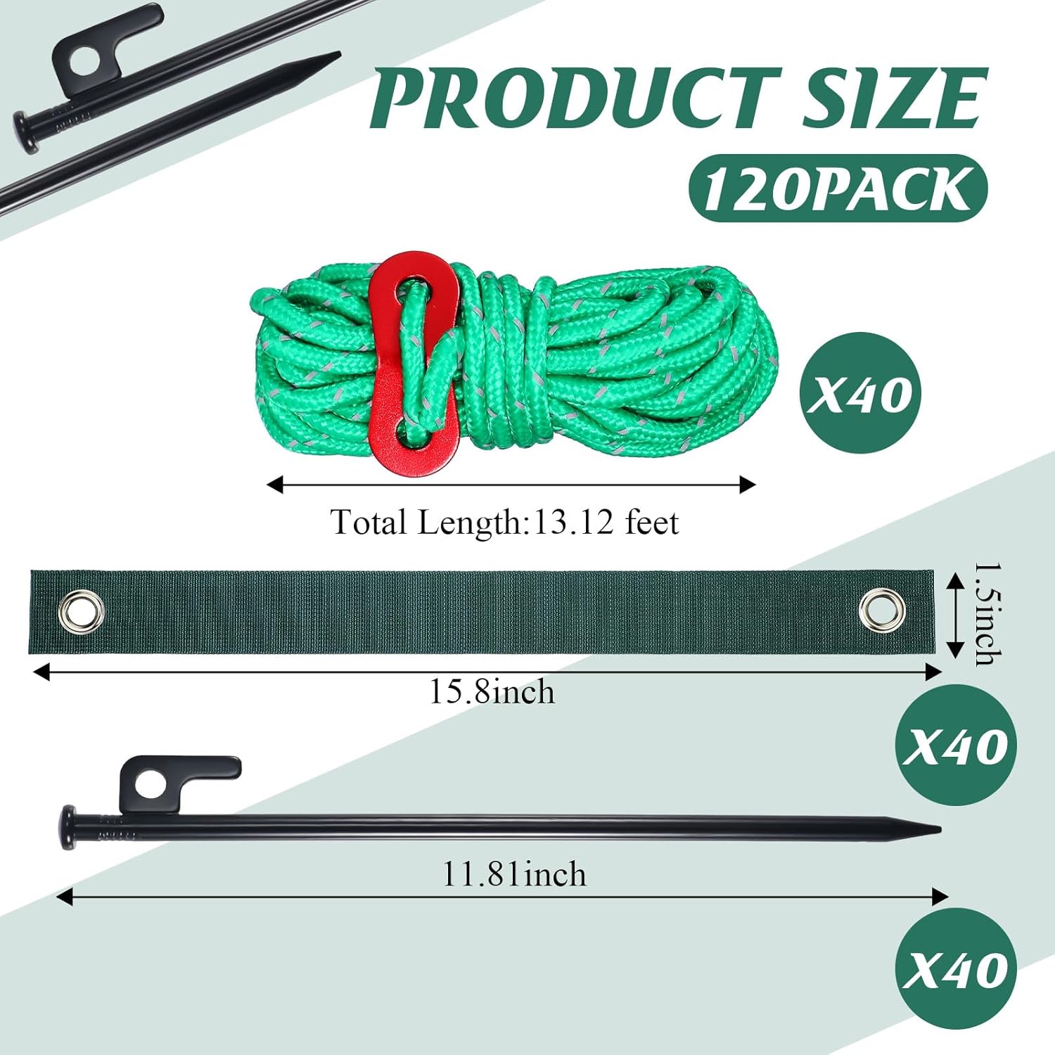 Suzile 120 Pcs Tree Stake Kit, Heavy Duty Tree Staking and Supports for Leaning Trees Include 11. 8'' Steel Stakes 15. 8'' Support Straps 13. 12 ft Ropes for Anchoring Hurricane Protection (Green)