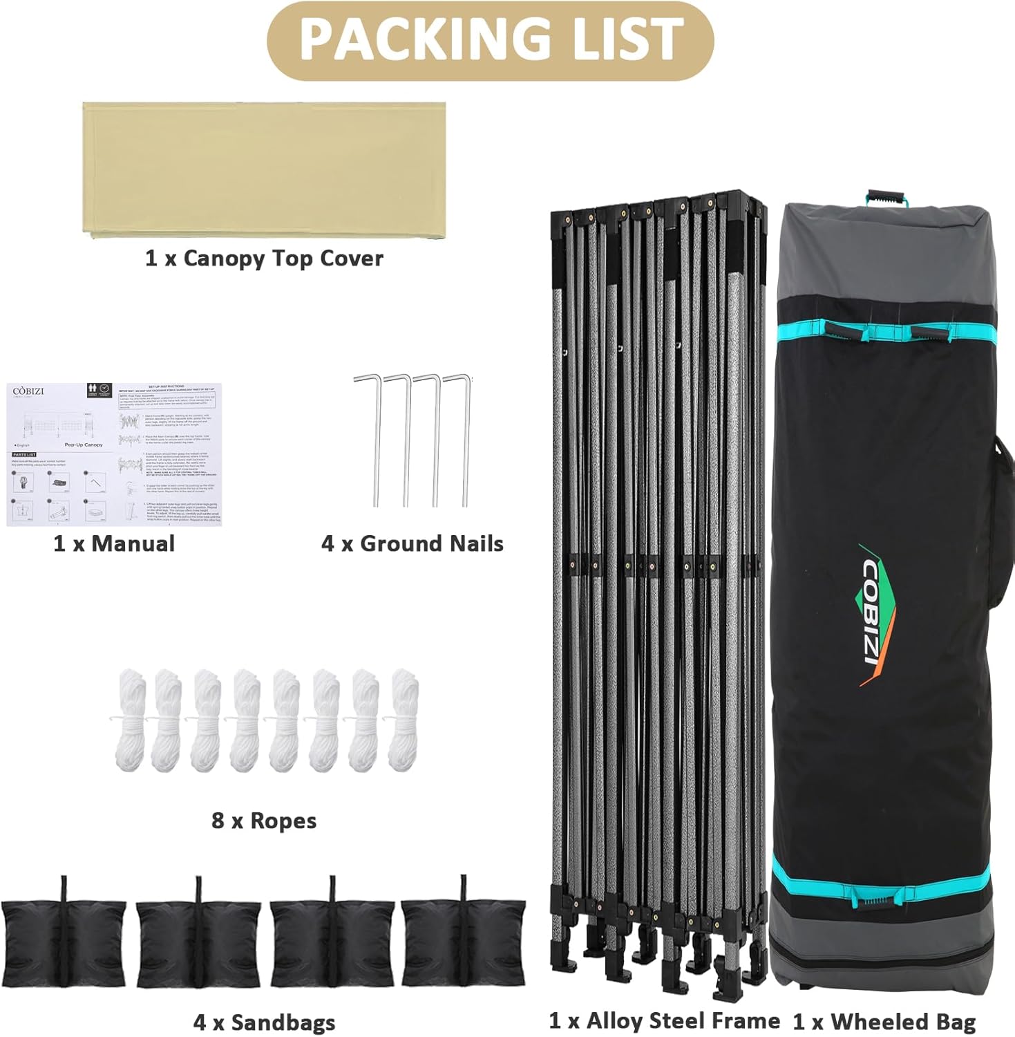 COBIZI 10x30 Pop Up Canopy Without Sidewall,Heavy Duty Canopy UPF 50+ All Season Wind Waterproof Commercial Outdoor Wedding Party Tents for Parties Canopy Gazebo with Roller Bag(10 x 30 ft Khaki)