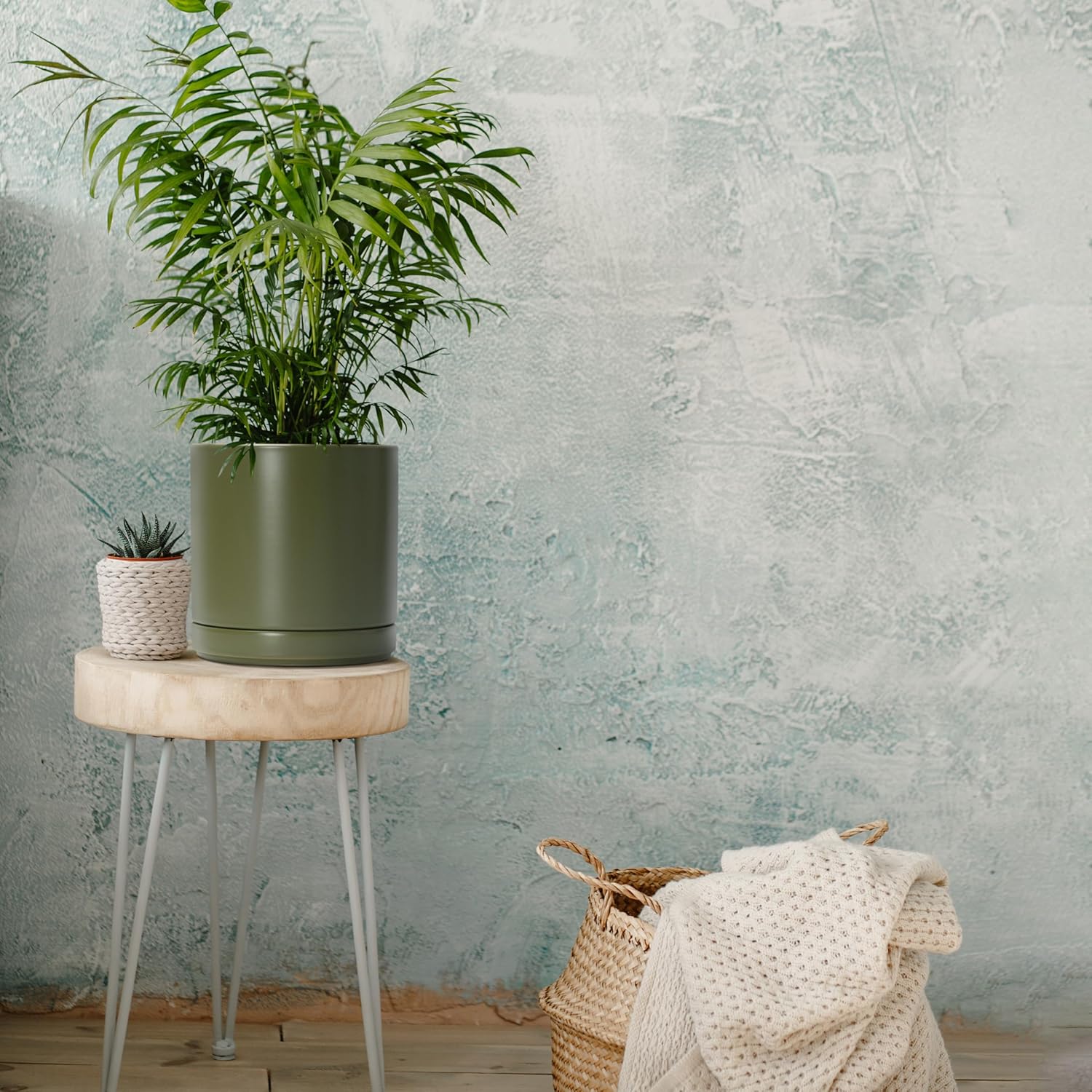 - Simple, elegant, and modern cylindrical straight round planter pot with saucer and drainage hole.