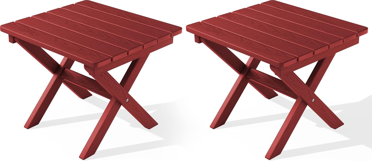 SERWALL Folding Outdoor Side Table Set of 2, Portable Adirondack Side Table, Red