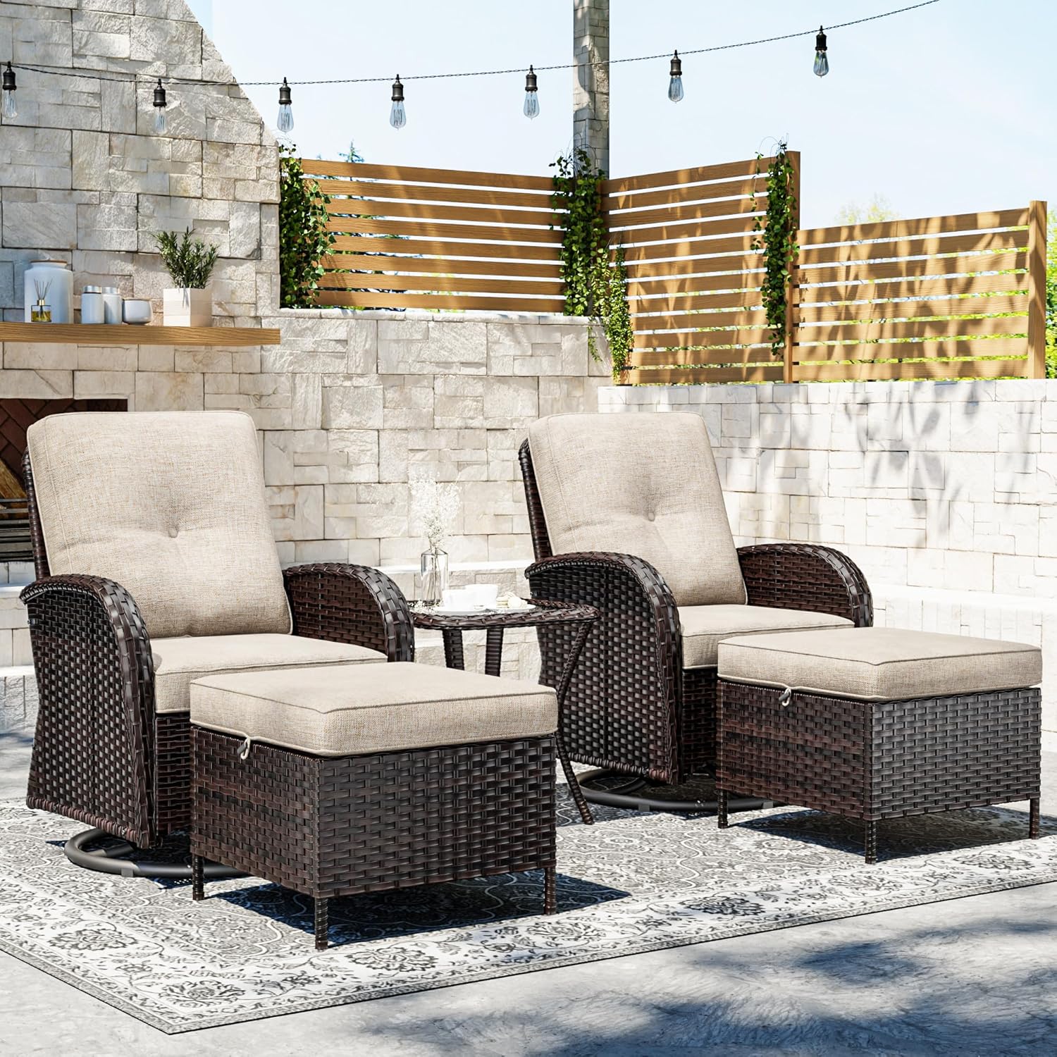 Joyside 5 Piece Patio Furniture Set, Outdoor Swivel Chair Sets with Thick Cushion and Ottoman, Wicker Patio Conversation Set for Porch, Deck Use (Brown/Beige, 5 PCS)