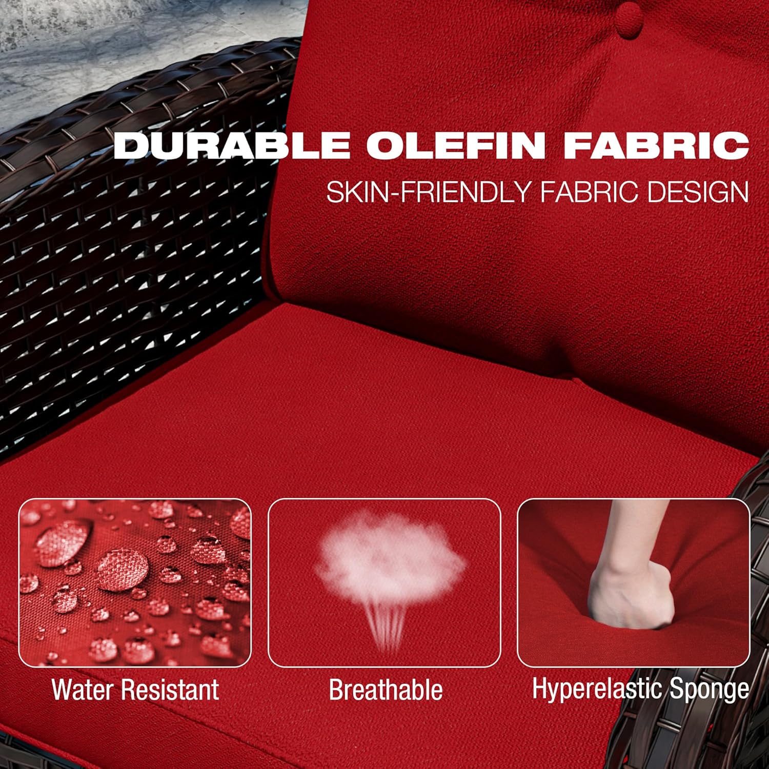 Joyside 10 Piece Patio Furniture Set, Outdoor Wicker Conversation Sets with Swivel Rocker Chairs and Sofa, Thick Cushion, Rattan Patio Sectional for Porch, Deck Use (Brown/Red, 10 PCS)