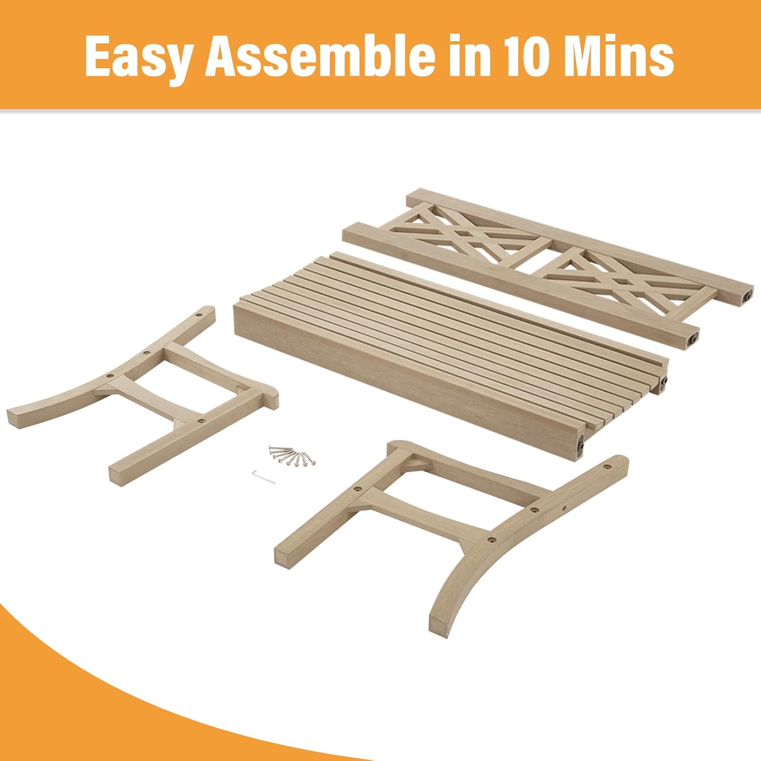 - Quick and Easy Assembly Designed for convenience, this 2-person bench comes with 4 pre-assembled pieces and 8 identical screws. Follow the included manual, and you’ll have your eco-friendly outdoor bench ready in just 10 minutes. All necessary installation tools are included for a stress-free setup.