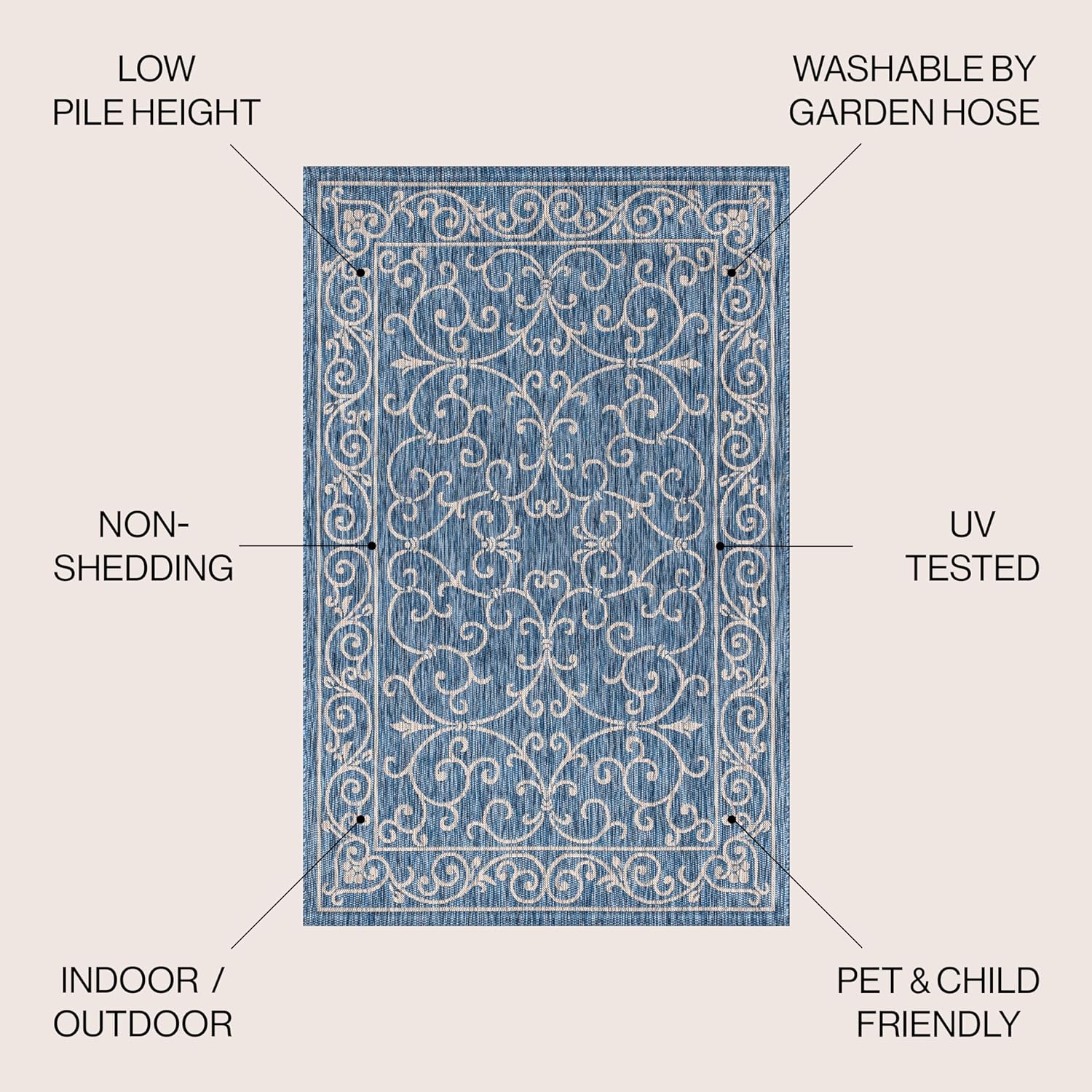 JONATHAN Y SMB106D-8SQ Charleston Vintage Filigree Textured Weave Navy/Gray 8' Square Indoor/Outdoor Area Rug, Pet Friendly, Non-Shedding, Stain Resistant, Easy-Cleaning for Backyard, Patio, Porch