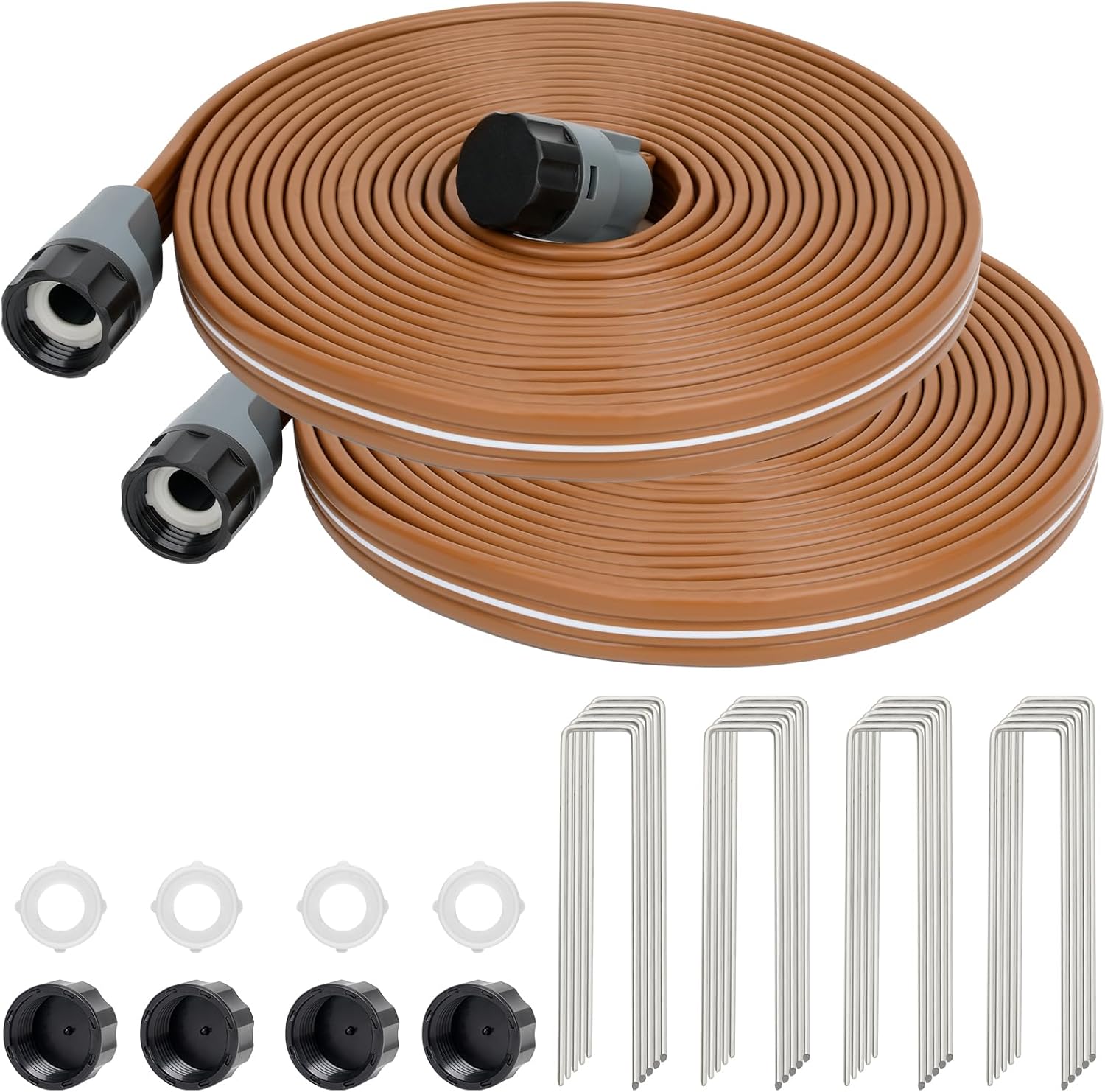 - Easy Installation: The LINEX sprinkler hose has a simple design and can be easily used without complicated instructions. It can quickly and effectively meet gardening needs. Equipped with the 6-inch metal landscape staples provided can provide additional support to keep the hose flat and prevent twisting