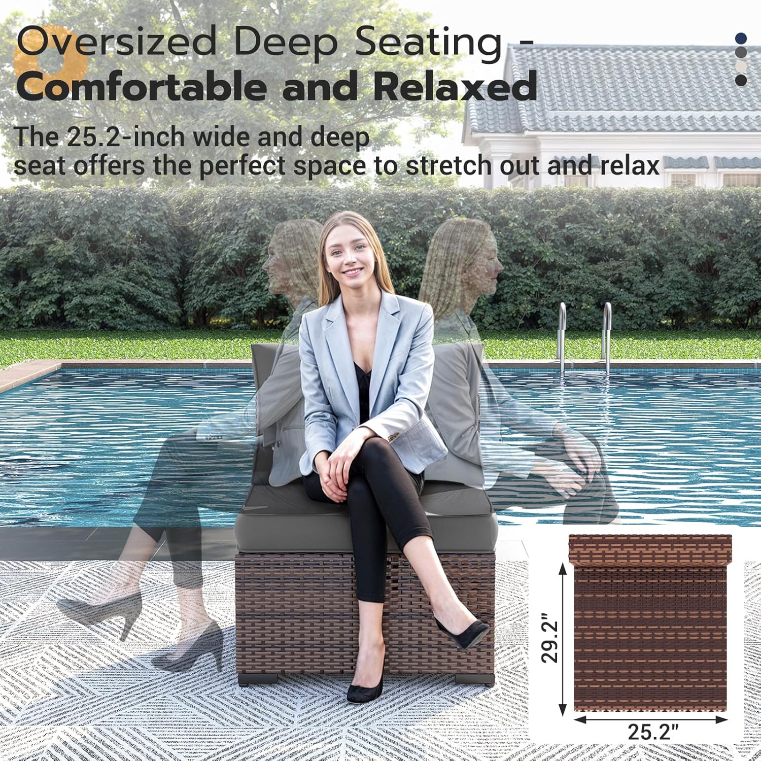 - Spacious and Comfortable Seats: Outdoor sectional furniture set features a 17.5" seat height and a 15" high backrest design, offering excellent support. The 25.2" wide and deep seats provide ample space, even after extended sitting, you wonโt experience any discomfort, ensuring long-lasting relaxation.