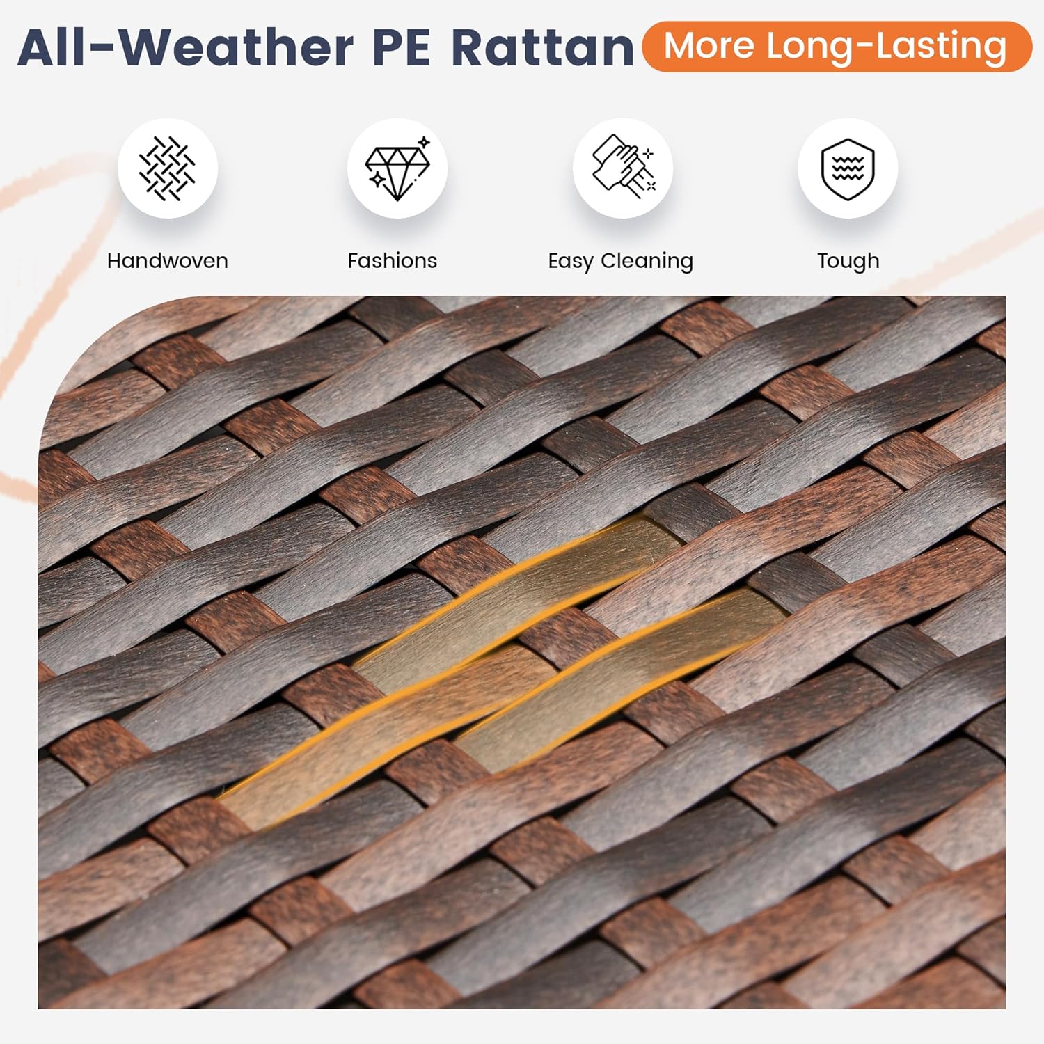 • Cushions for Ultimate Comfort: The 4" high-density foam seat cushion provides firm yet cozy support, while the well-filled back cushion offers a plush, cloud-like feel. Non-slip granules and tie straps keep them securely in place. Wrapped in durable 220D waterproof, fade-resistant fabric, these cushions withstand the elements while staying soft and stylish.