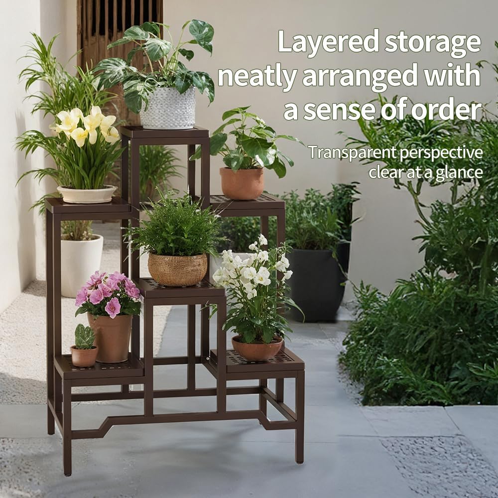 Plant Stand - Aluminum Indoor/Outdoor Flower Rack, Waterproof & Rust-Proof, Stable Support for Pots, Perfect for Living Room, Balcony, Garden, and Office (Brown, 6 Tier)