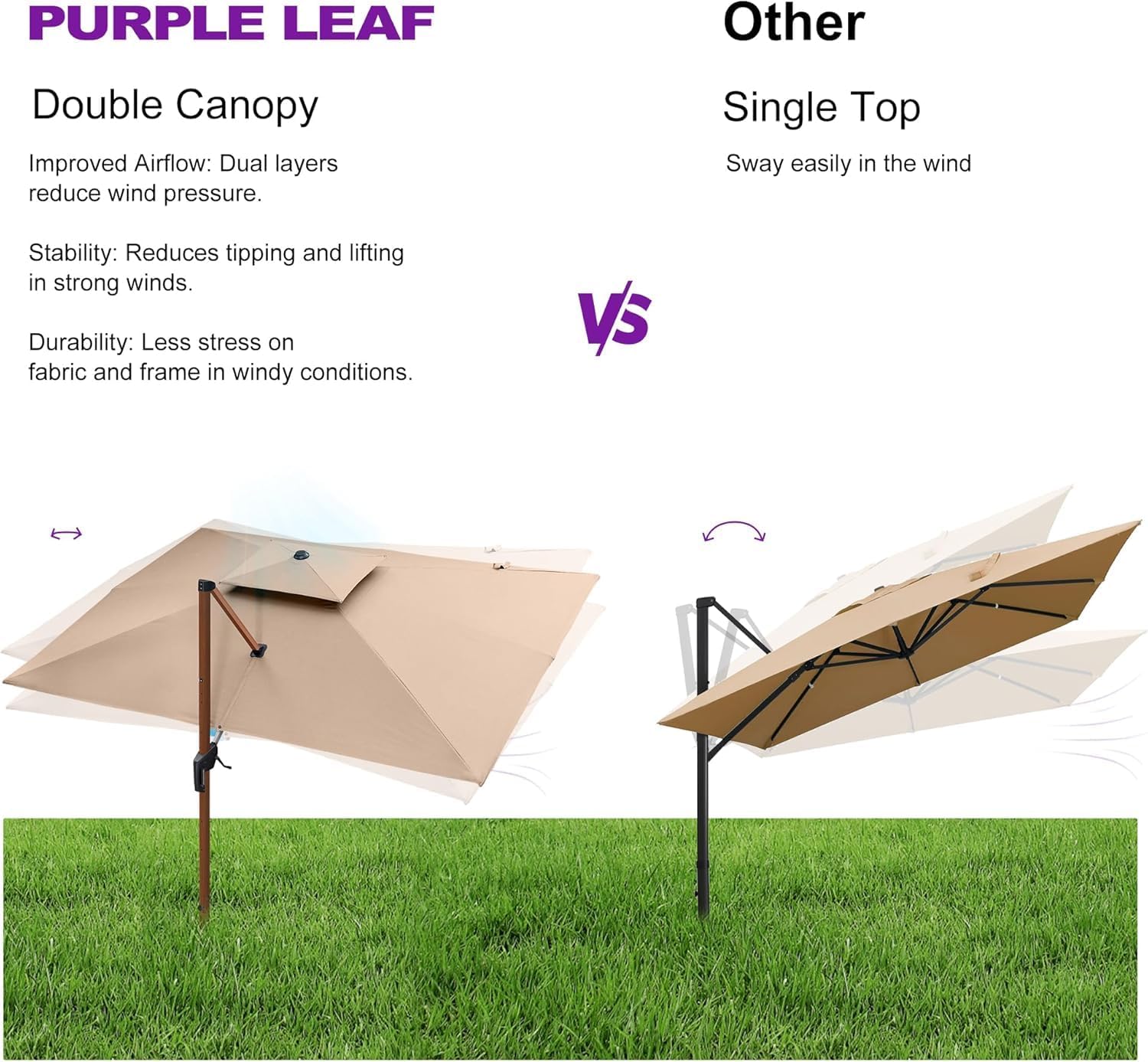 PURPLE LEAF 11' X 11' Patio Umbrella Cantilever Outdoor Umbrellas Square Large Parasol Windproof Sunshade Heavy Duty Sun Umbrellas for Deck Pool Patio Garden, Beige