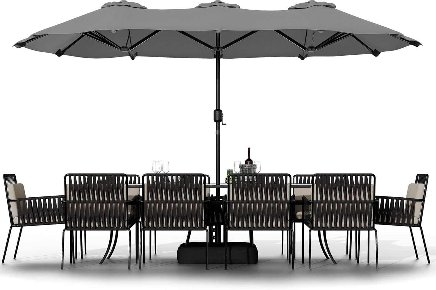 - Extra-Large Shade Coverage:15ft double-sided design creates expansive shading area, comfortably accommodating people gathering. Ideal sun protection solution for patios, poolside areas, and commercial spaces