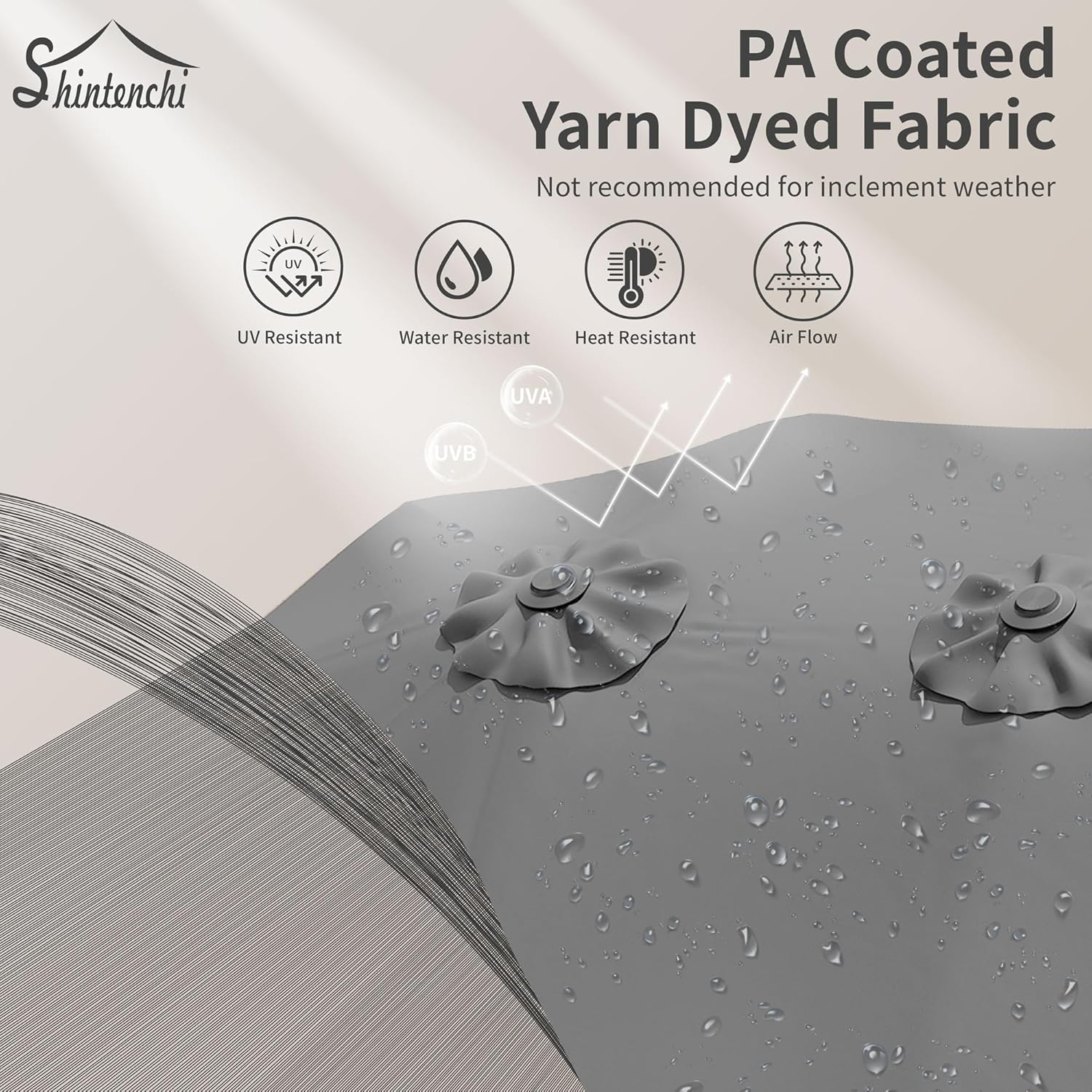 - Premium Fabric Canopy: 100% polyester canopy with UV protective certification, featuring fade-resistant and tear-proof properties. Selected performance withstands sun exposure and rain showers