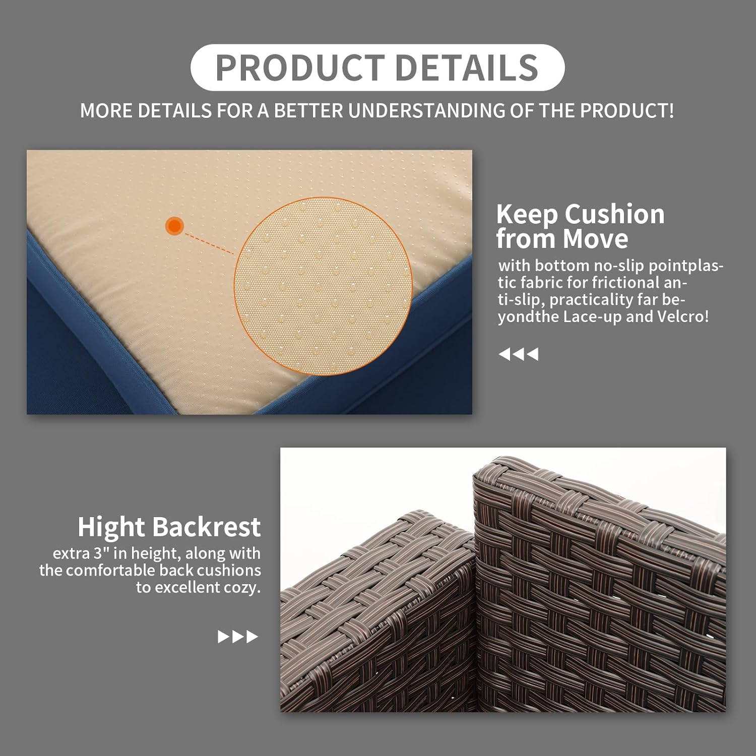 - Comfortable and Non-slip: seat cushions(4 inches) with high resilience sponge and bottom array anti-slip dotted fabric, match up plump back cushions with water-resistant, color retention fabric covers for lasting appeal with outdoor patio furniture, which is extraordinarily comfortable and everlasting