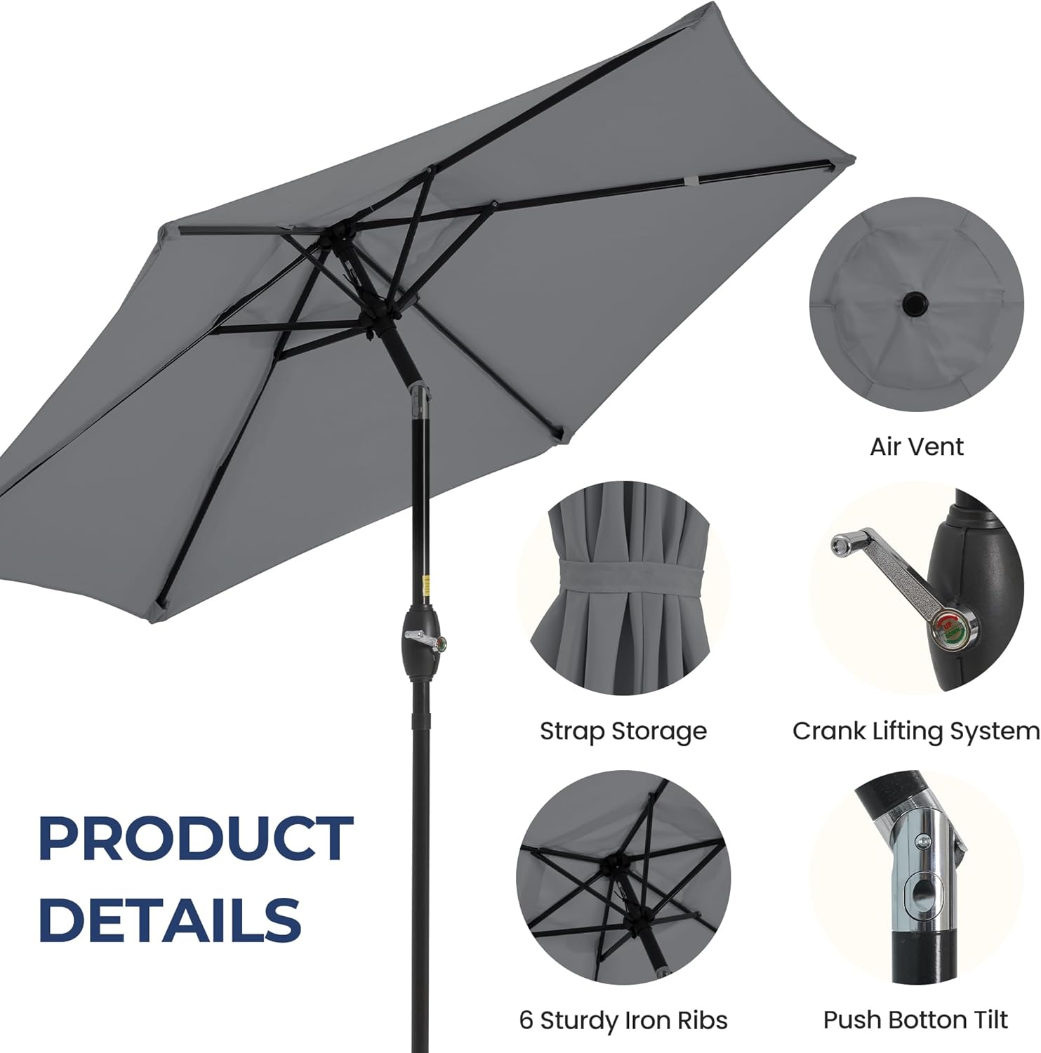 - PUSH-BUUTTON TILT: The outdoor umbrella is designed with a crank lifting system, which is easy and fast to use, and the push-button tilt function can realize 360Β° sunshade, so that the sun does not leave your left and right