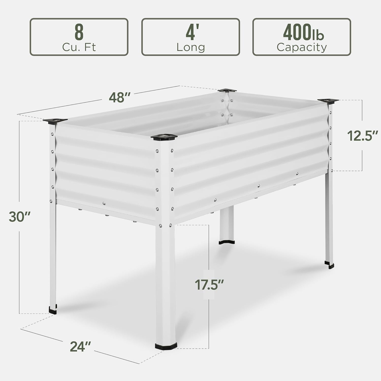 Best Choice Products 48x24x30in Galvanized Raised Garden Bed, Metal Elevated Planter Box, Vegetable Garden for Backyard, Patio, Balcony - White
