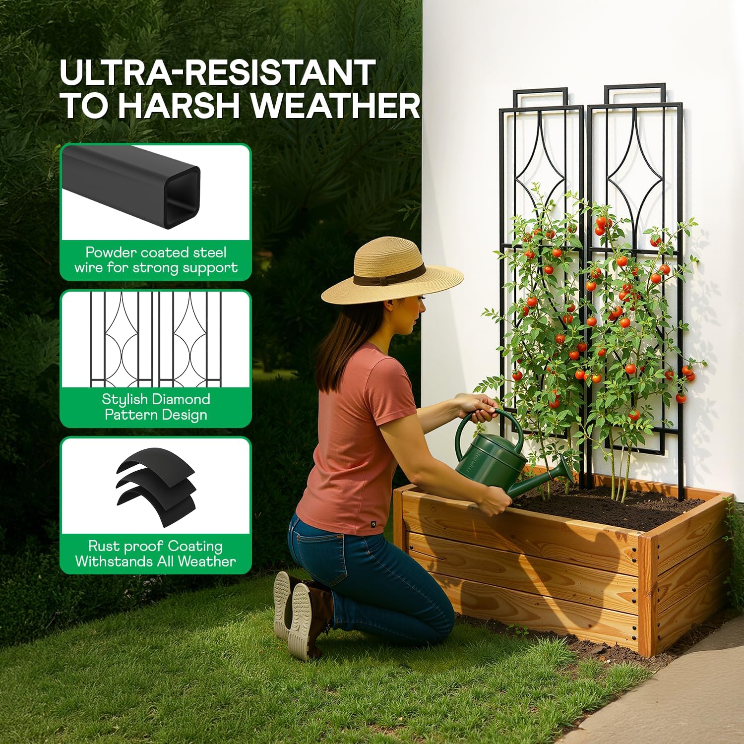 - DURABLE STEEL CONSTRUCTION: Crafted from sturdy hollow steel, this tall metal trellis offers reliable, long-term support; Built to withstand outdoor elements and resist corrosion, it retains its strength and shape year-round