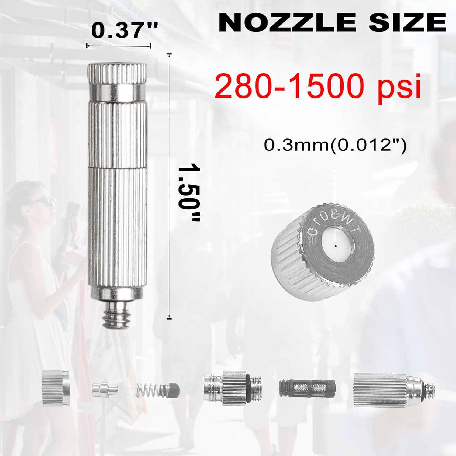 - 【Built to Last】 Crafted from premium nickel plated brass, these misting nozzles resist rust and corrosion. Integrated filters help prevent clogs, ensuring reliable performance all season long.