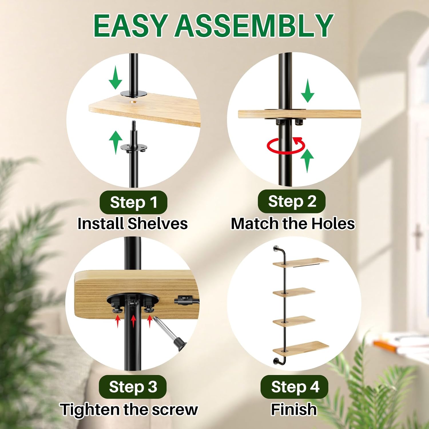 - EASY TO ASSEMBLE: The wall-mounted plant stands are easy to install and have all the necessary hardware! Just install shelves, match the hole and tighten the screw then finish. The floating plant shelves design allows you to keep your indoor plant shelves clean and well-maintained