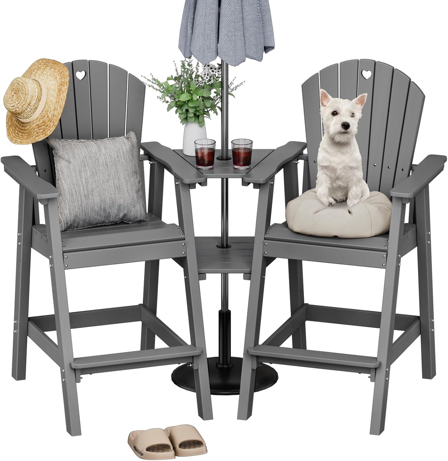 - [Sturdy Double Connecting Tray with Umbrella Holes]: Upgrade your outdoor seating with Orbcove Tall Adirondack Chairs, featuring dual removable trays that each hold up to 50 lbs—perfect for drinks, snacks, or accessories. Built-in 2-inch umbrella holes let you add instant shade. Designed for taller individuals, the 28'' seat height offers a clear, unobstructed view, while the durable HDPE construction supports up to 360 lbs, making these chairs ideal for the pool, patio, bar, or backyard.