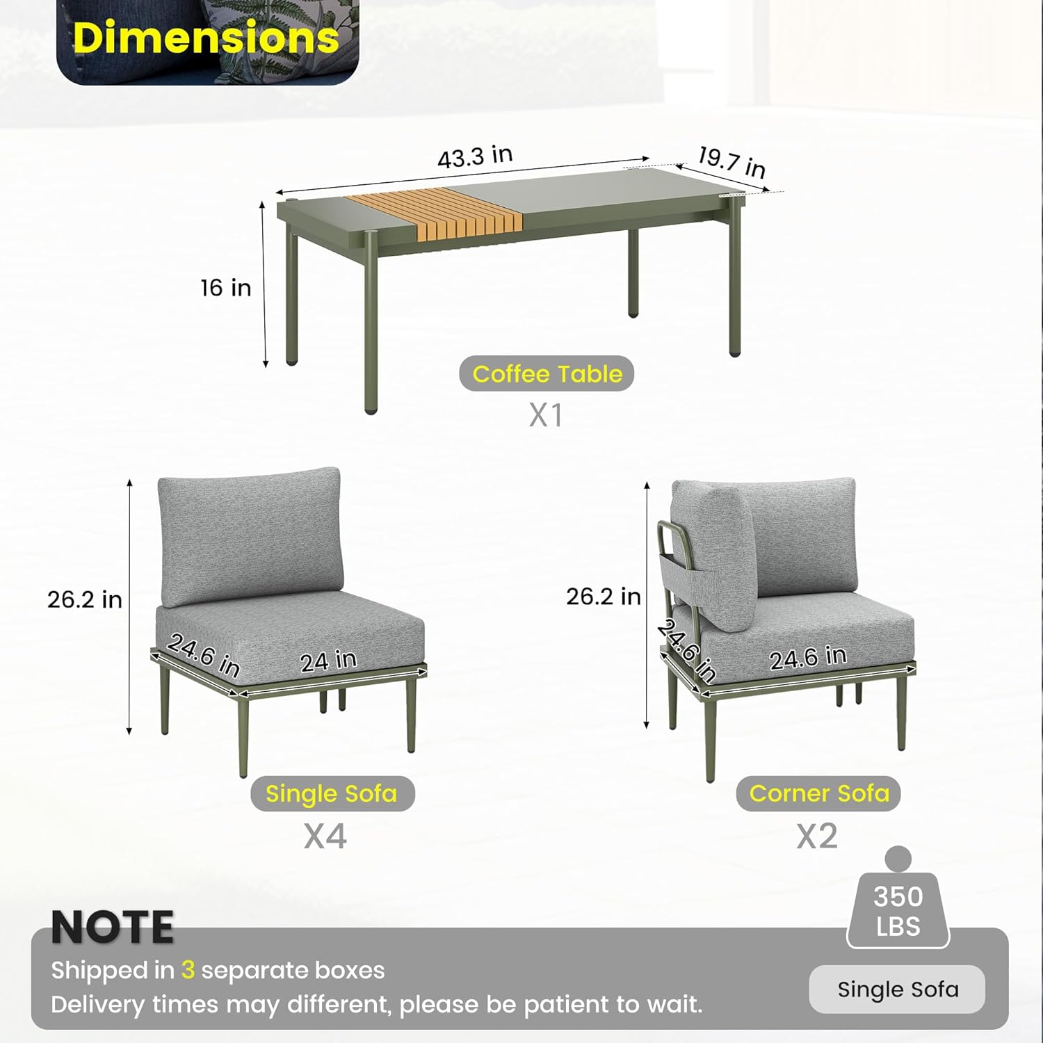 Sundale Outdoor 7 Pieces Metal Patio Furniture Set, Outdoor Sectional Sofa w/6 Inch Olefin Cushion and Coffee Table, Modern Outdoor Conversation Sets