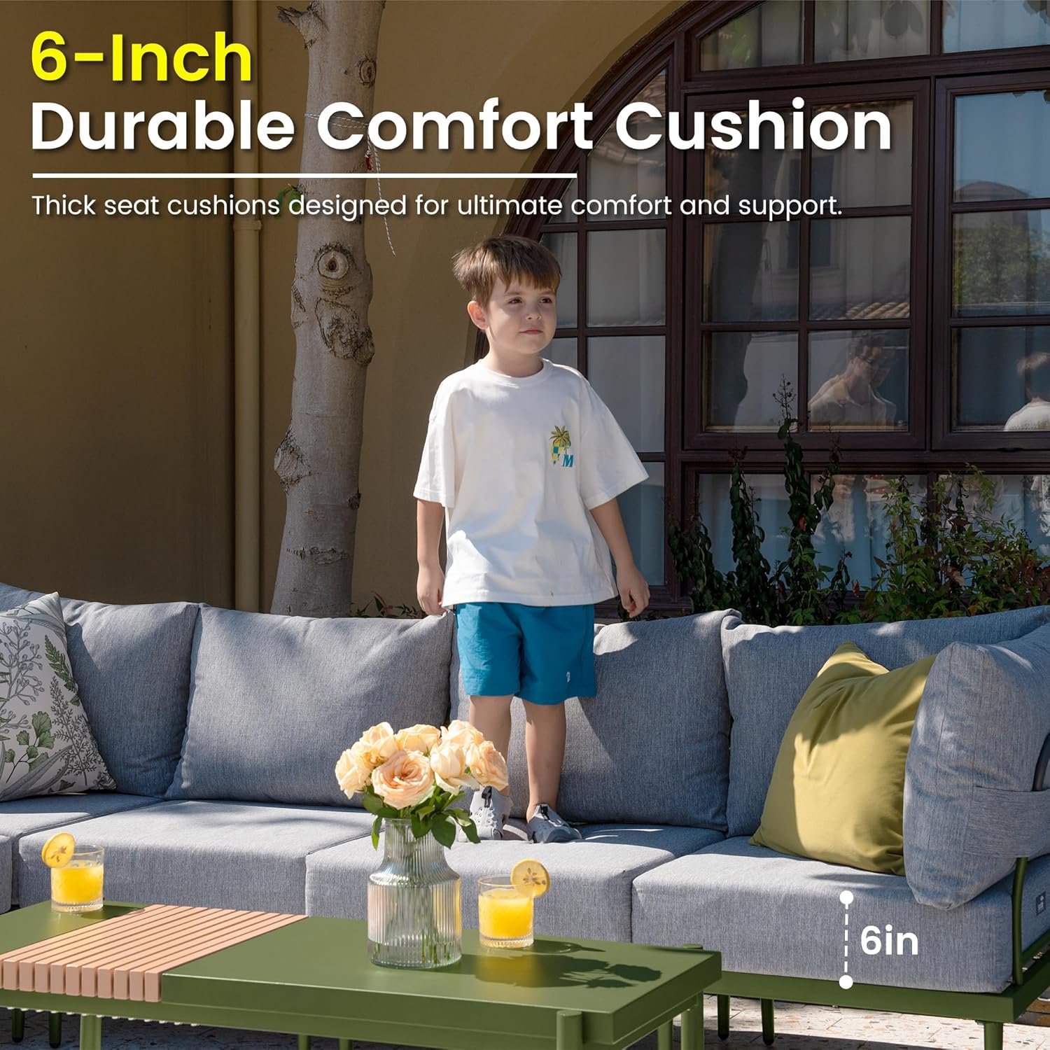 - Sturdy Metal Frame: The outdoor sofa set’s robust spray-painted metal structure promises exceptional stability and durability, so you can trust it will stand strong even through the seasons. Rust-resistant and built to last, this sectional will be your outdoor companion for years to come