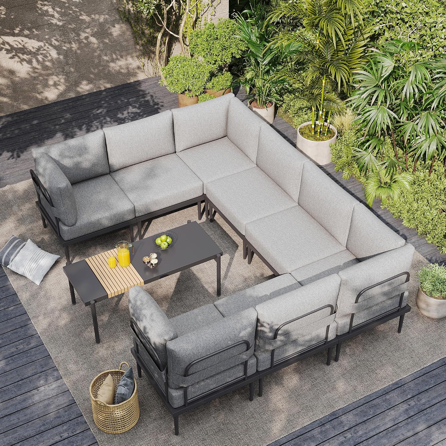 - Versatile Modular Design: Mix and match components to craft your ideal setup for gardens, backyards, decks, balconies, or terraces. From cozy nooks to large gatherings, this sectional adapts seamlessly, offering endless customization options for any outdoor occasion