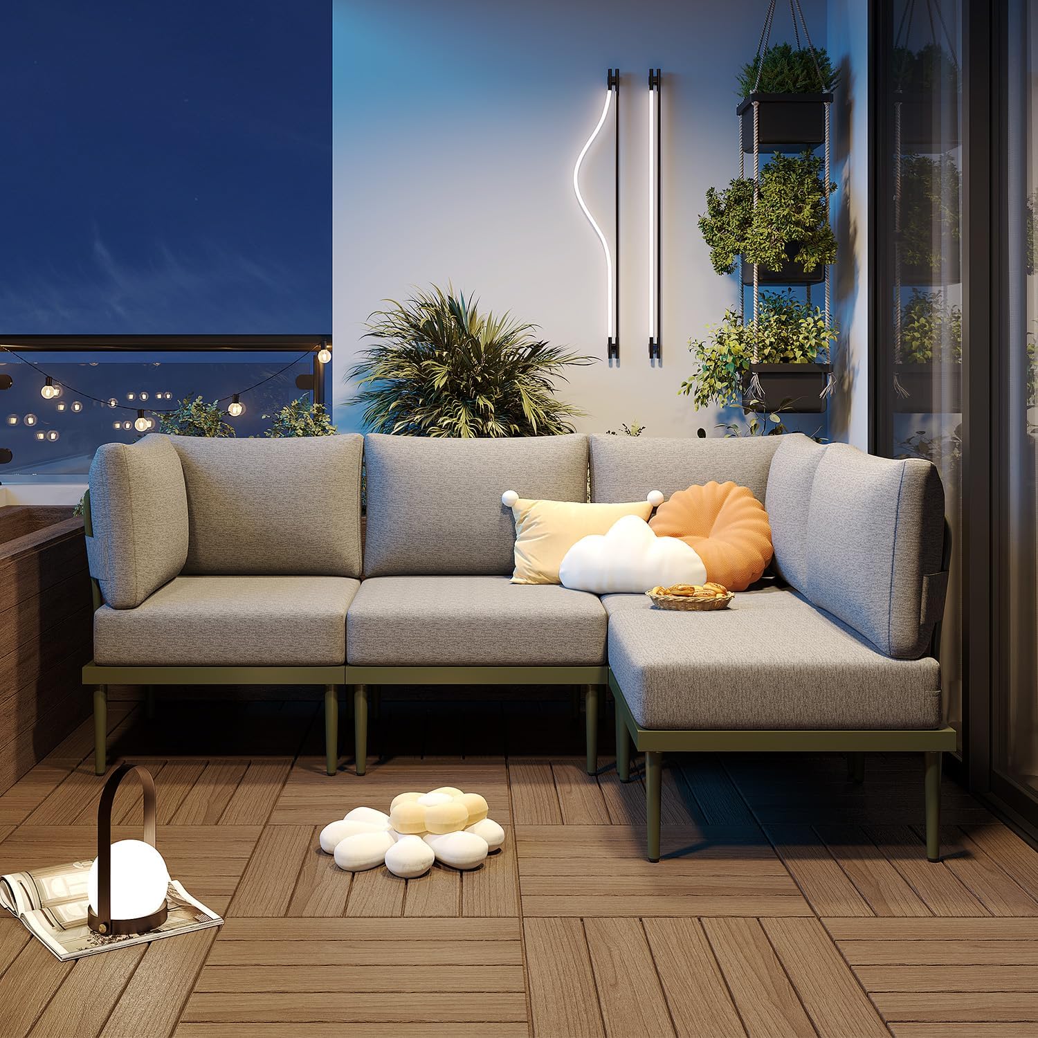 - Sturdy Metal Frame: The outdoor sofa set’s robust spray-painted metal structure promises exceptional stability and durability, so you can trust it will stand strong even through the seasons. Rust-resistant and built to last, this sectional will be your outdoor companion for years to come