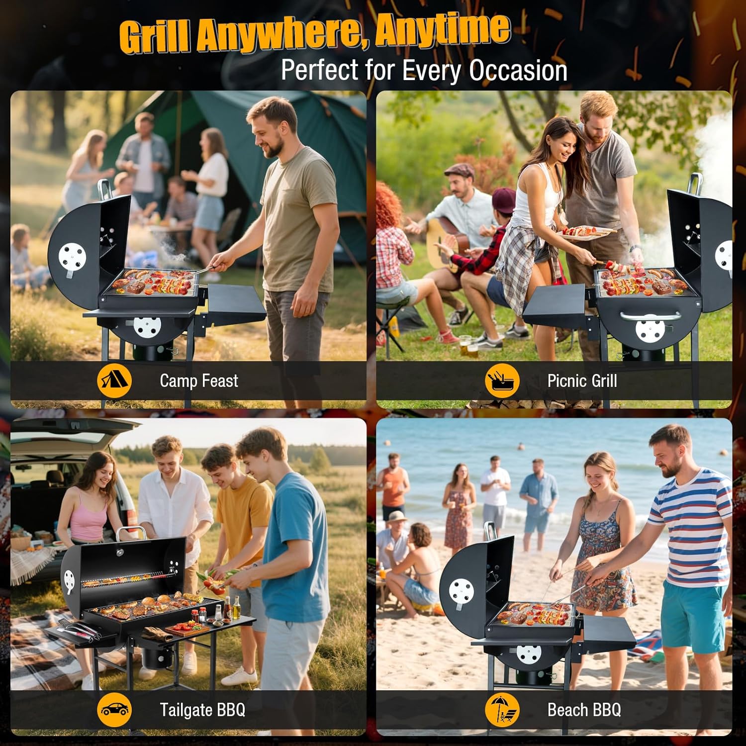 - Convenient Charcoal Refueling & Ash Management: The center-lift charcoal access grate lets you add coal without removing the whole rack - no interruptions while grilling. Combined with an easy-clean ash holder, this coal grill keeps your cookout flowing smoothly and cleaning hassle-free