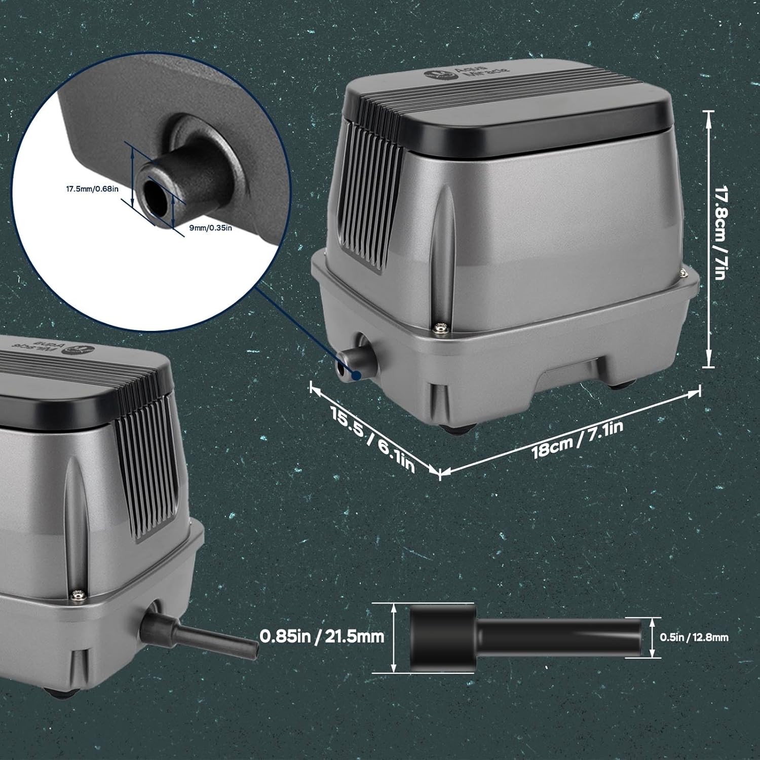 - WHISPER-QUIET OPERATION - Experience peace and tranquility with this koi pond aerator, thanks to its unique motor design, straight airflow path, and vibration-relieving rubber feet. The result is a super silent operation that won't disturb the serenity of your pond.