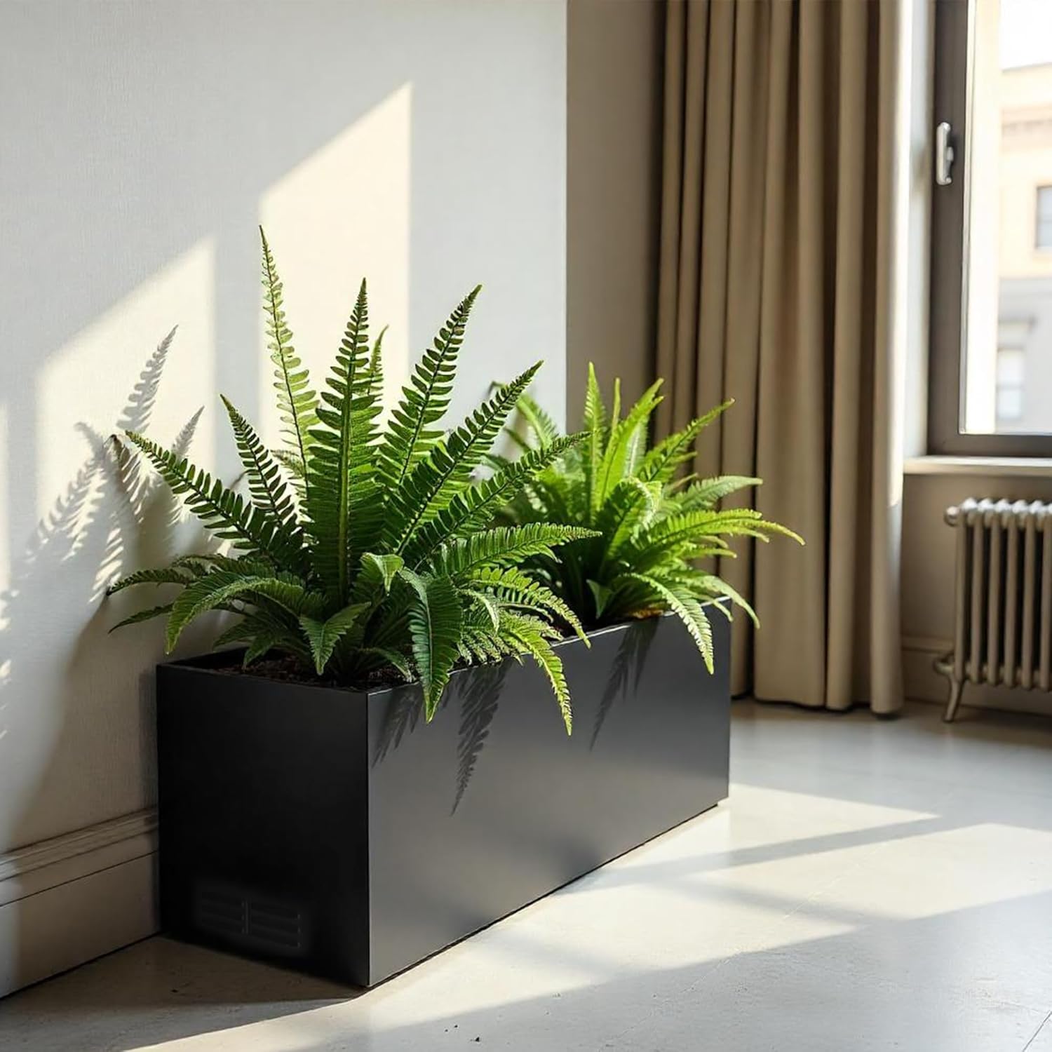 Worth Garden Metal Planter Box - 30" L x 11" W x 13" H Matte Black Heavy Duty Large Rectangular Steel Modern Plant Pot, Indoor Outdoor - Insert Plate with Drain Holes, Air Vents, No Assembly Required